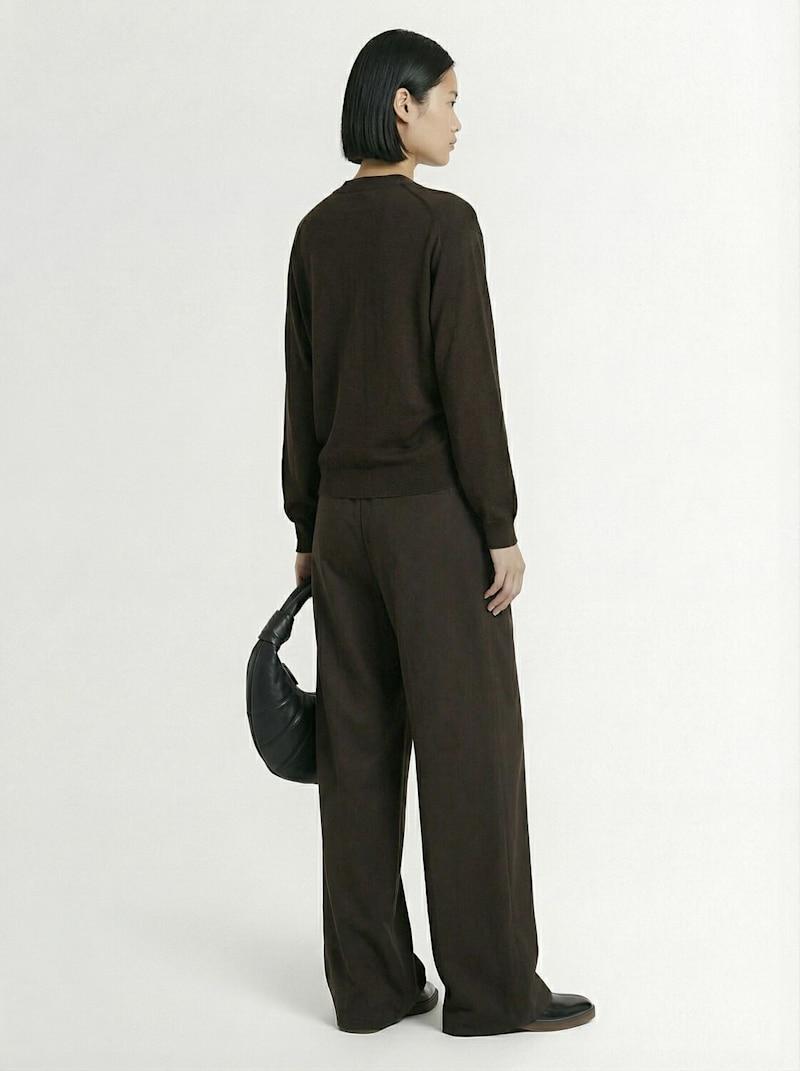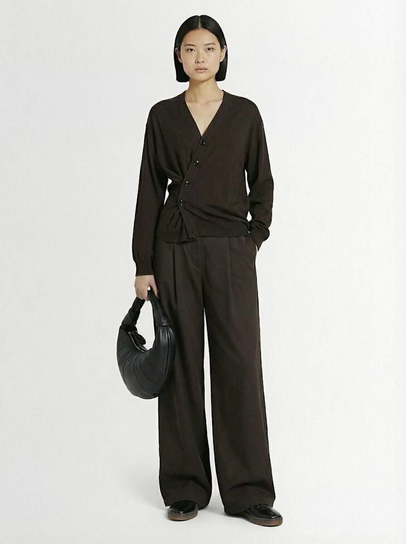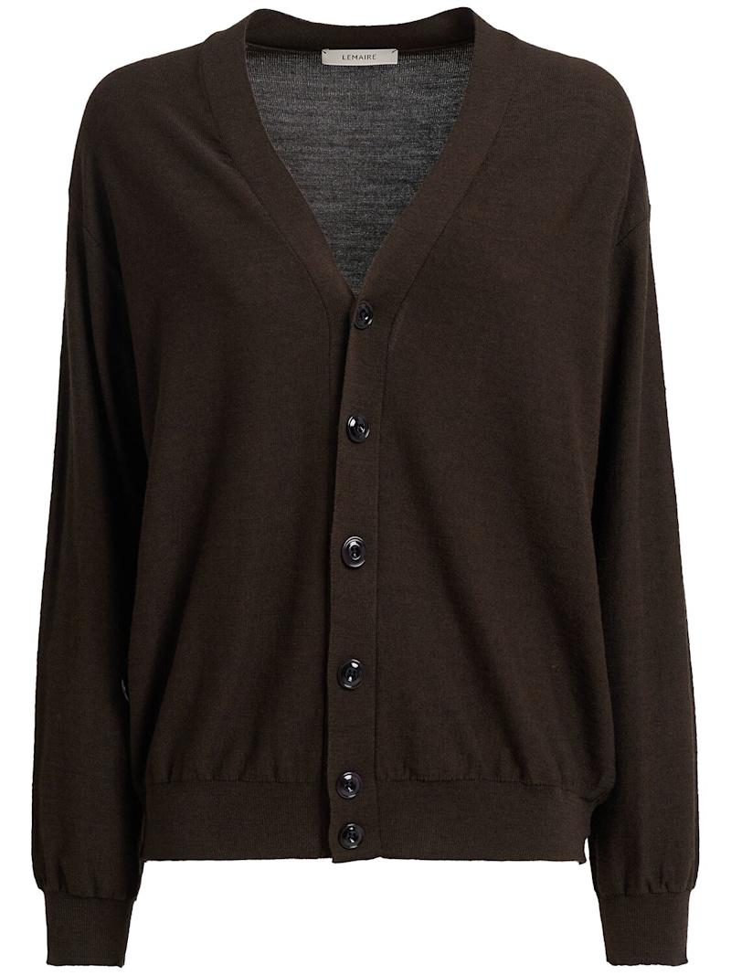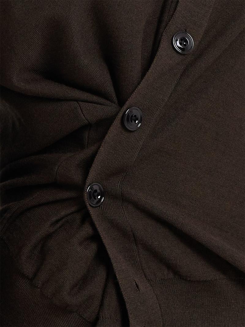 扭曲设计羊毛混纺休闲开衫 - 棕色 - 女士 - Lemaire - 正面纽扣开合.