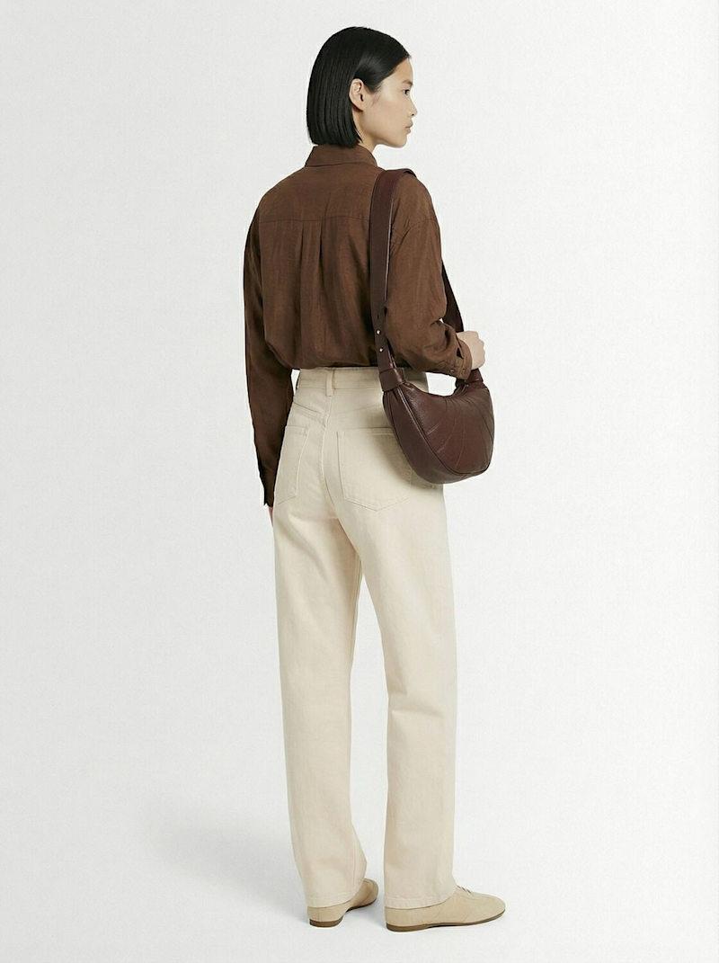 扭曲棉质系腰带裤子 - 白色 - 女士 - Lemaire - 隐藏式正面粘扣开合.