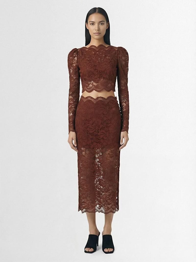 扇贝边中长半身裙 - 棕色 - 女士 - Rabanne - 隐形开合.
