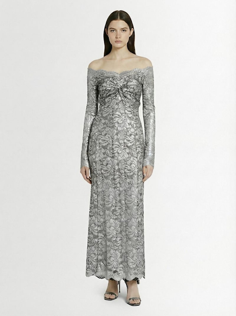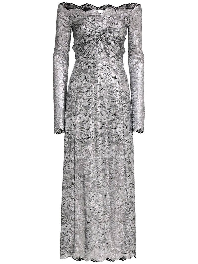 弹力蕾丝圆领长款连衣裙 - 银色 - 女士 - Rabanne - 周身图案布局可能不同