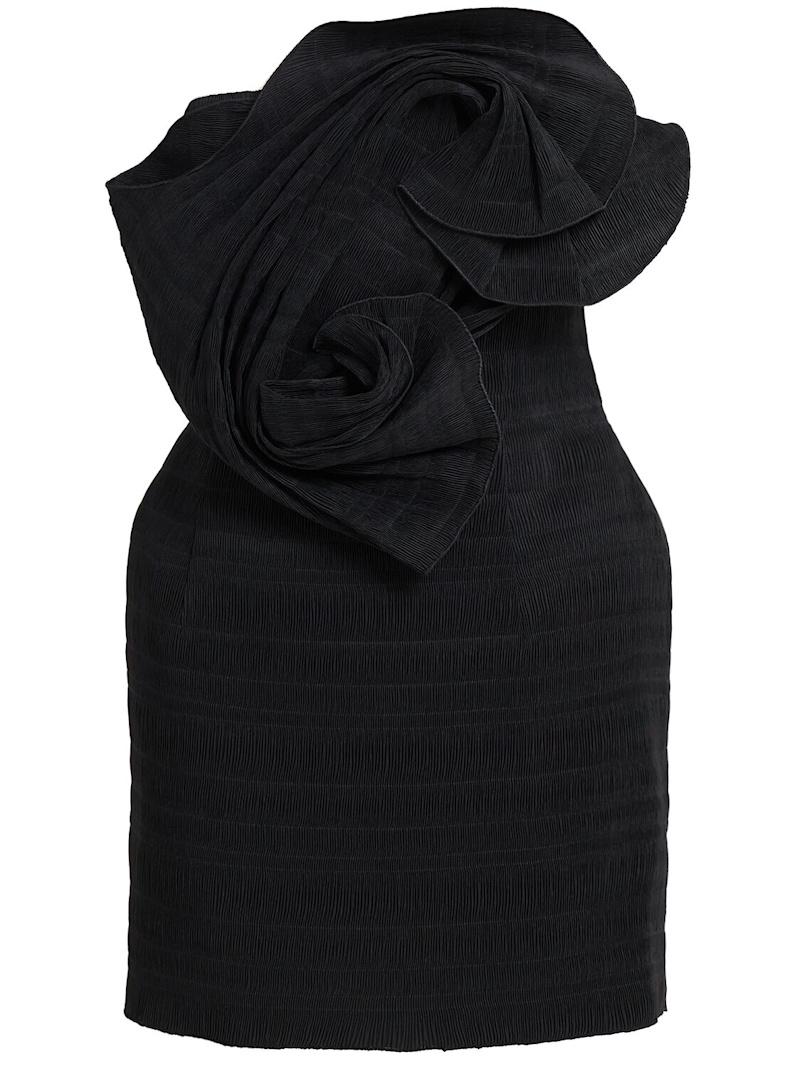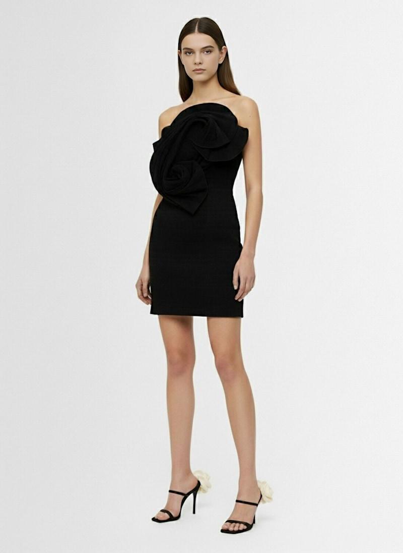 玫瑰装饰无肩带迷你连衣裙 - 黑色 - 女士 - Magda Butrym - 背面拉链开合