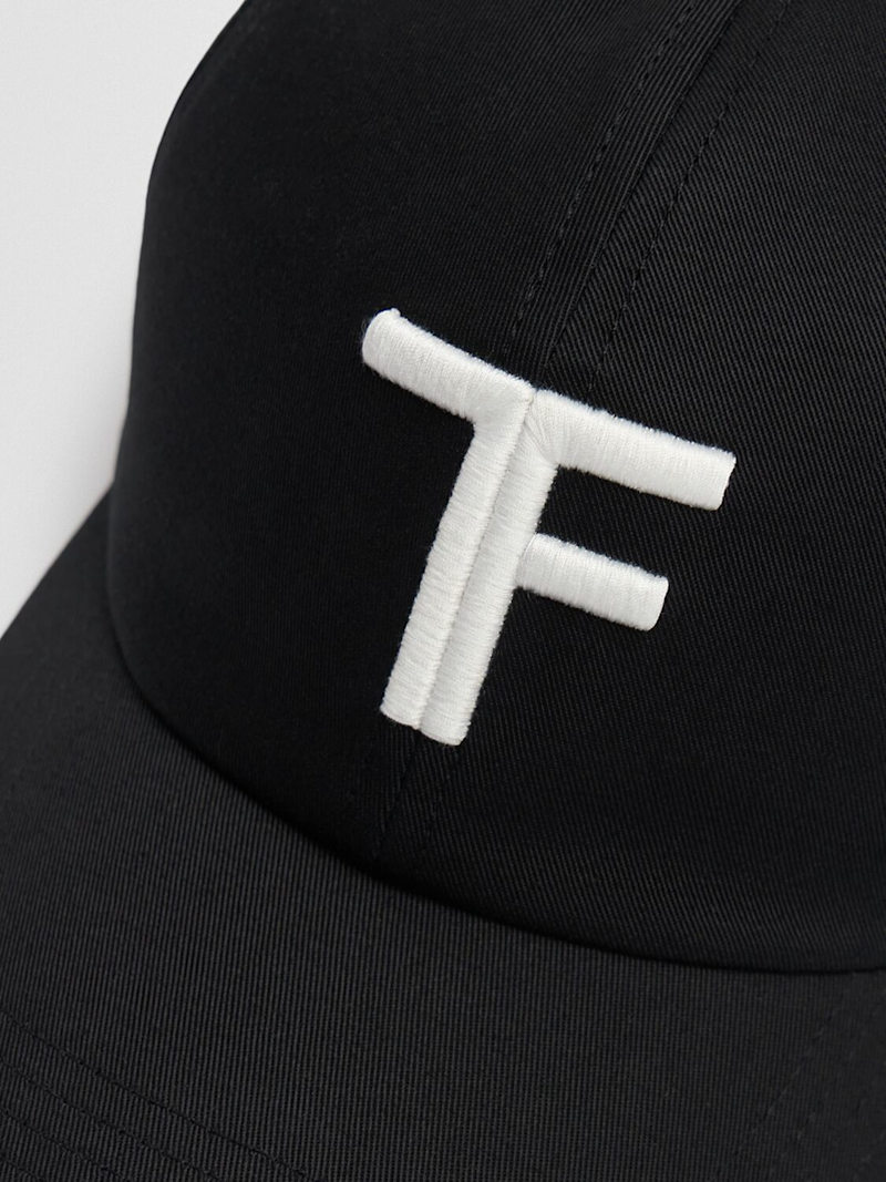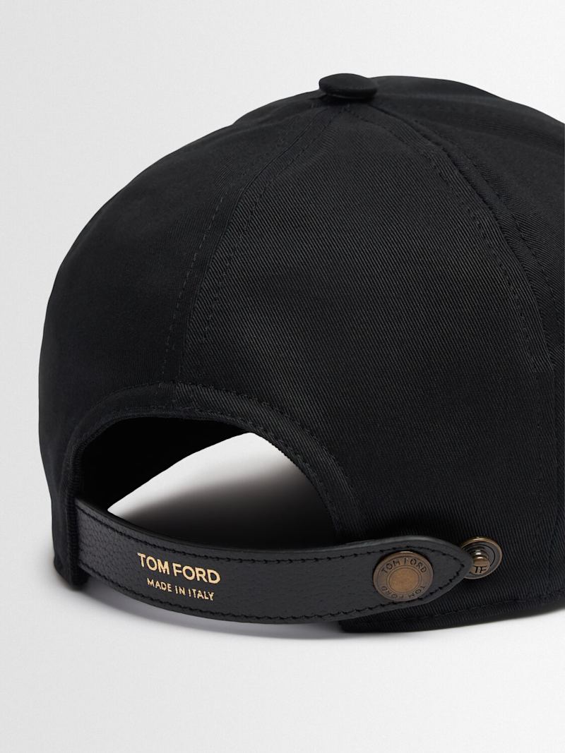 TF logo棉&皮革帽子 - 黑色/米白色 - 男士 - Tom Ford - 背面可调节皮革束带.
