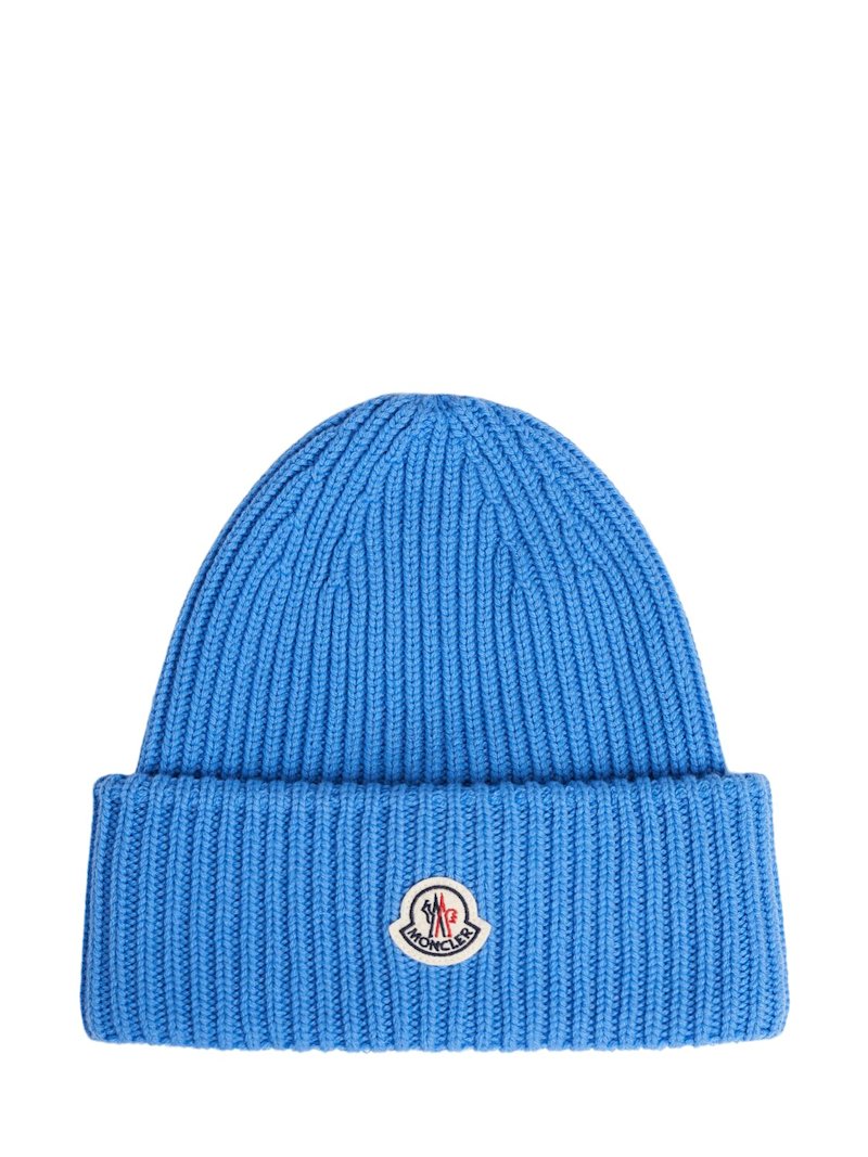 Logo羊毛&羊绒便帽 - 亮蓝色 - 男士 - Moncler - 采用羊毛和羊绒混纺织物制作.