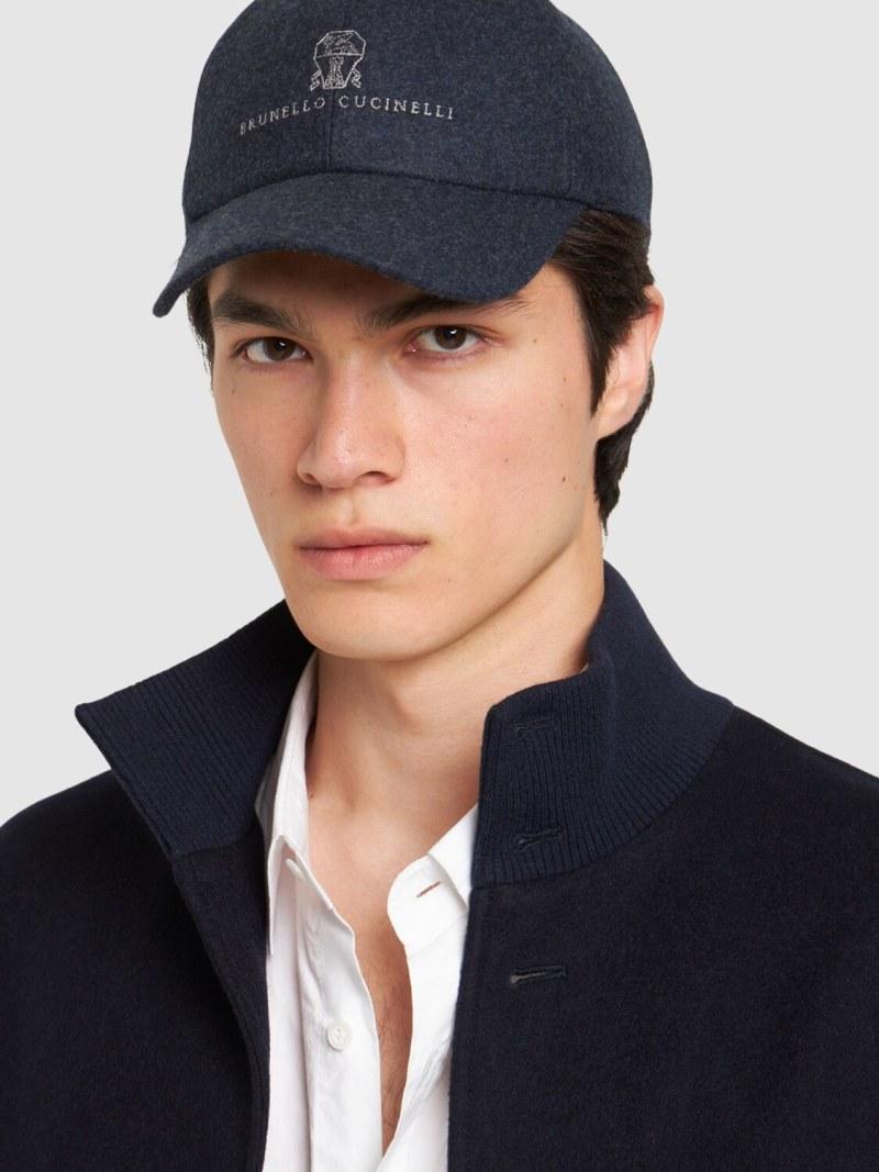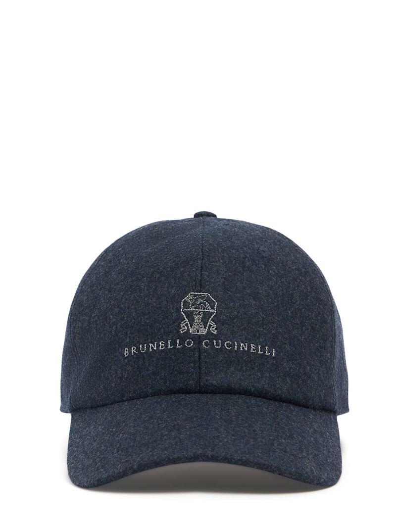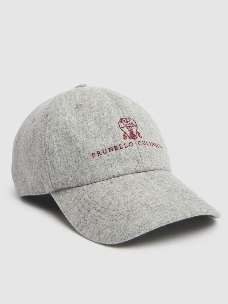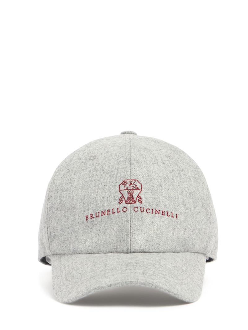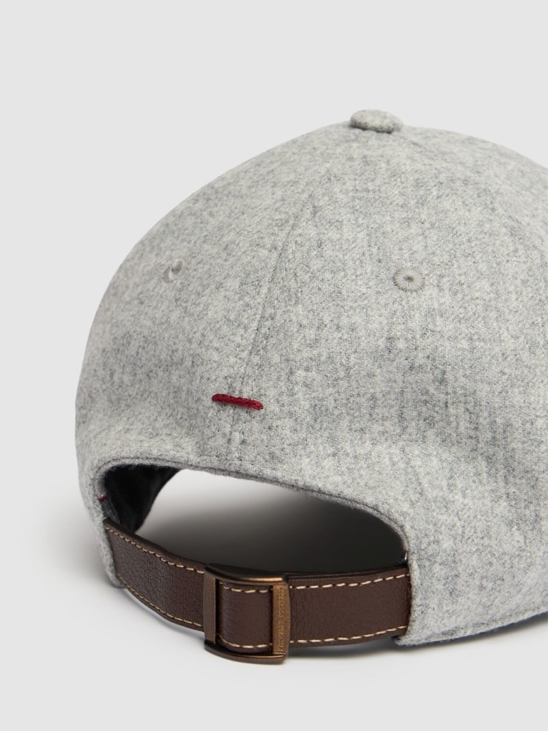 Logo羊毛法兰绒棒球帽 - 珍珠灰 - 男士 - Brunello Cucinelli - 背面有可调节束带.