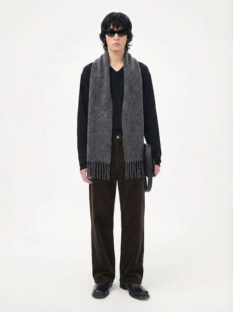 羊驼毛混纺围巾 - 灰色 - 男士 - Our Legacy - 流苏饰边.