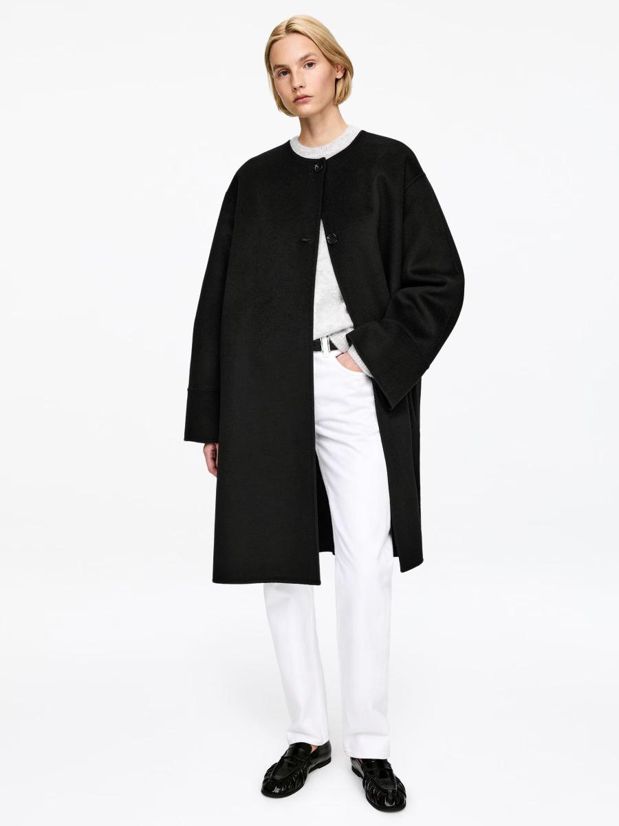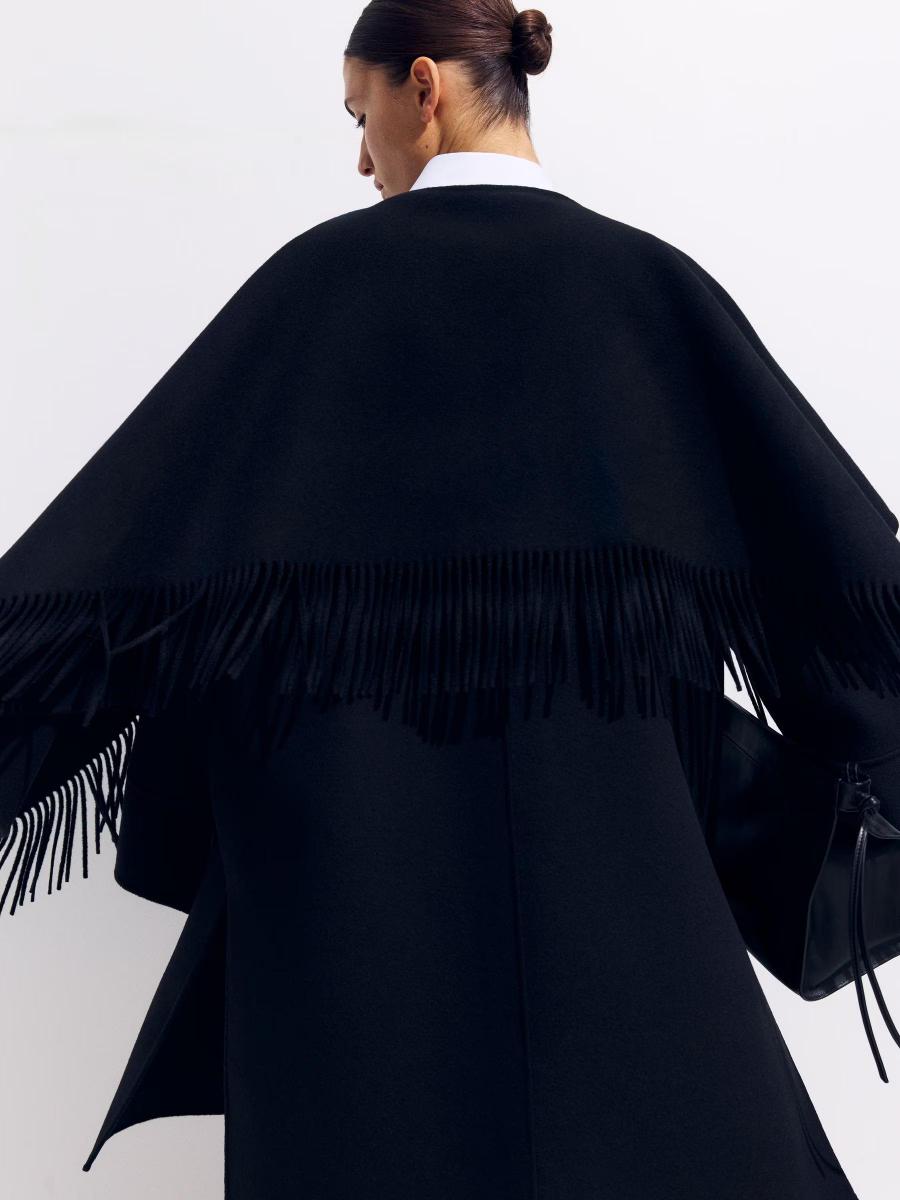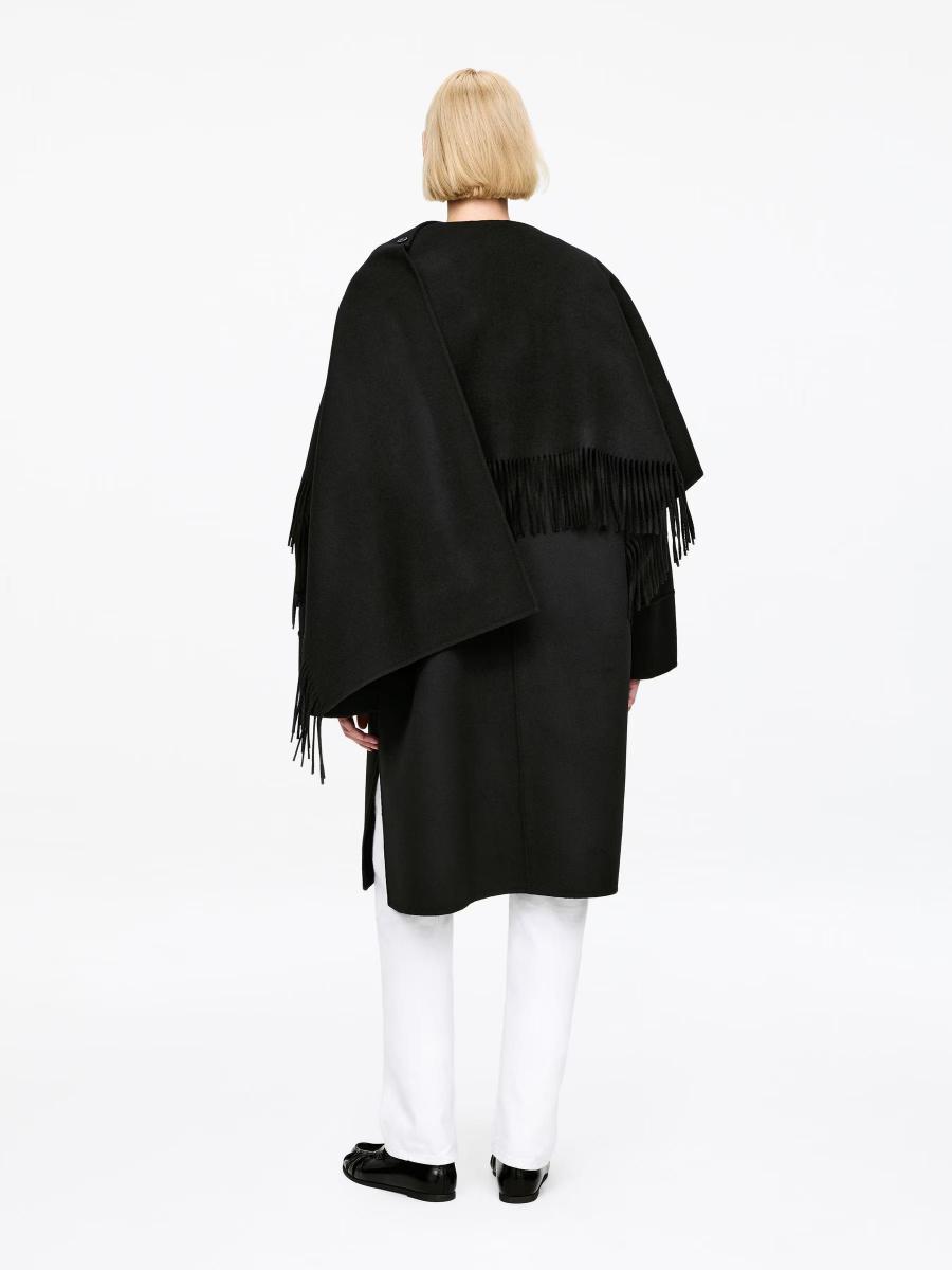 This clean iteration of a cape coat is crafted from a refined double-cloth wool blend and features a detachable fringe scarf, high cuffs and high slits. Roomy side pockets hold your everyday essentials with ease.ARKET/Women's clothes/Women's coats and jackets/Women's coats