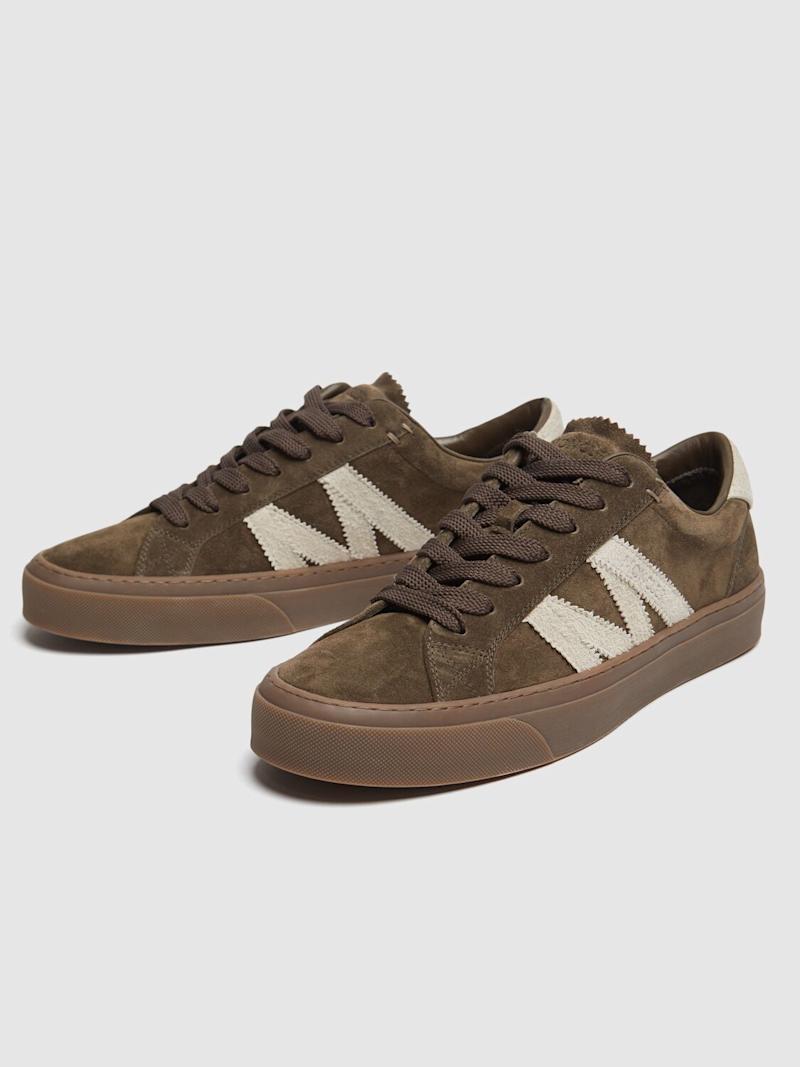 Monaco2麂皮运动鞋 - 橄榄绿 - 男士 - Moncler - 皮革鞋面上剖层皮革和毛绒.