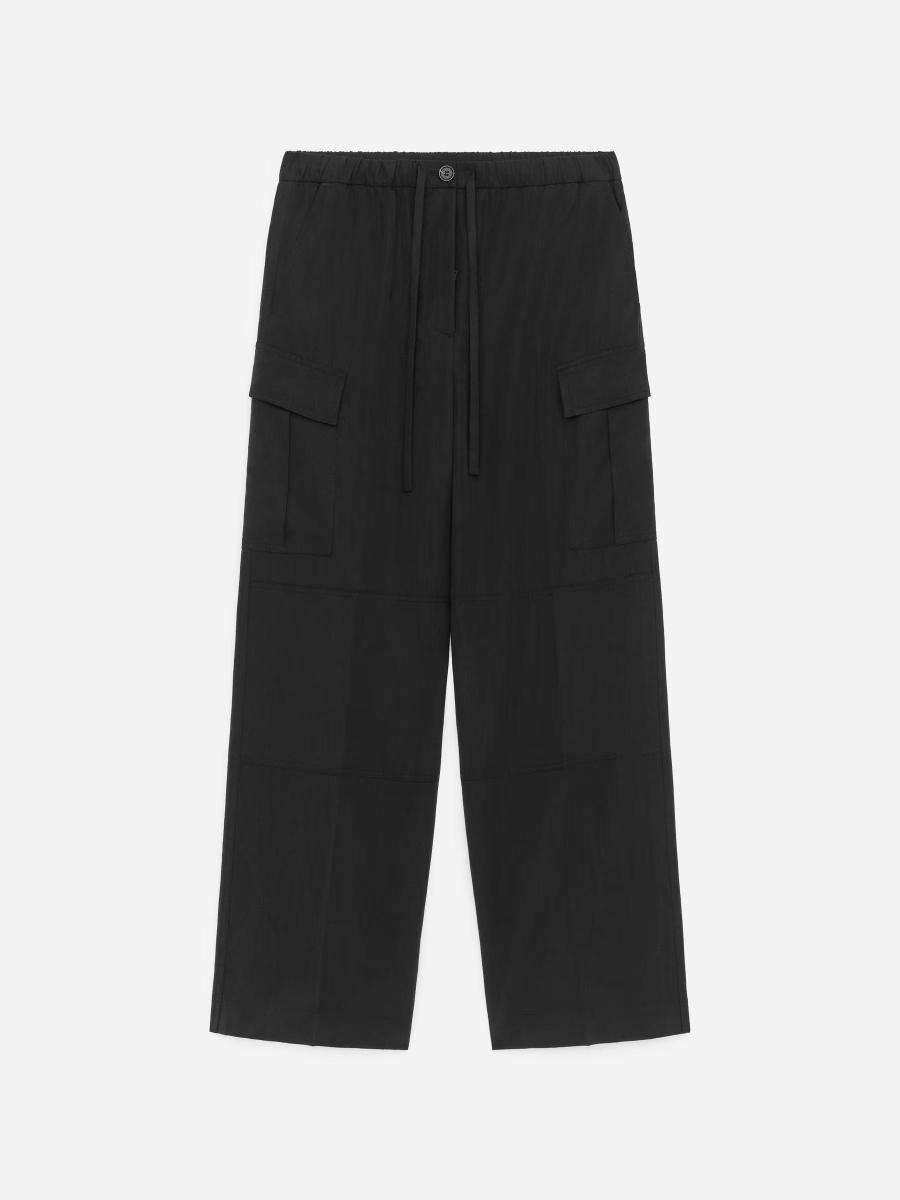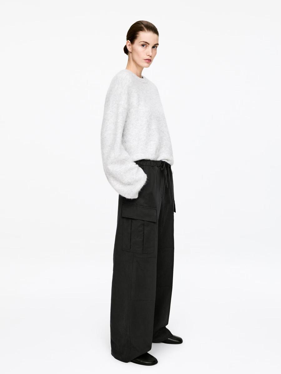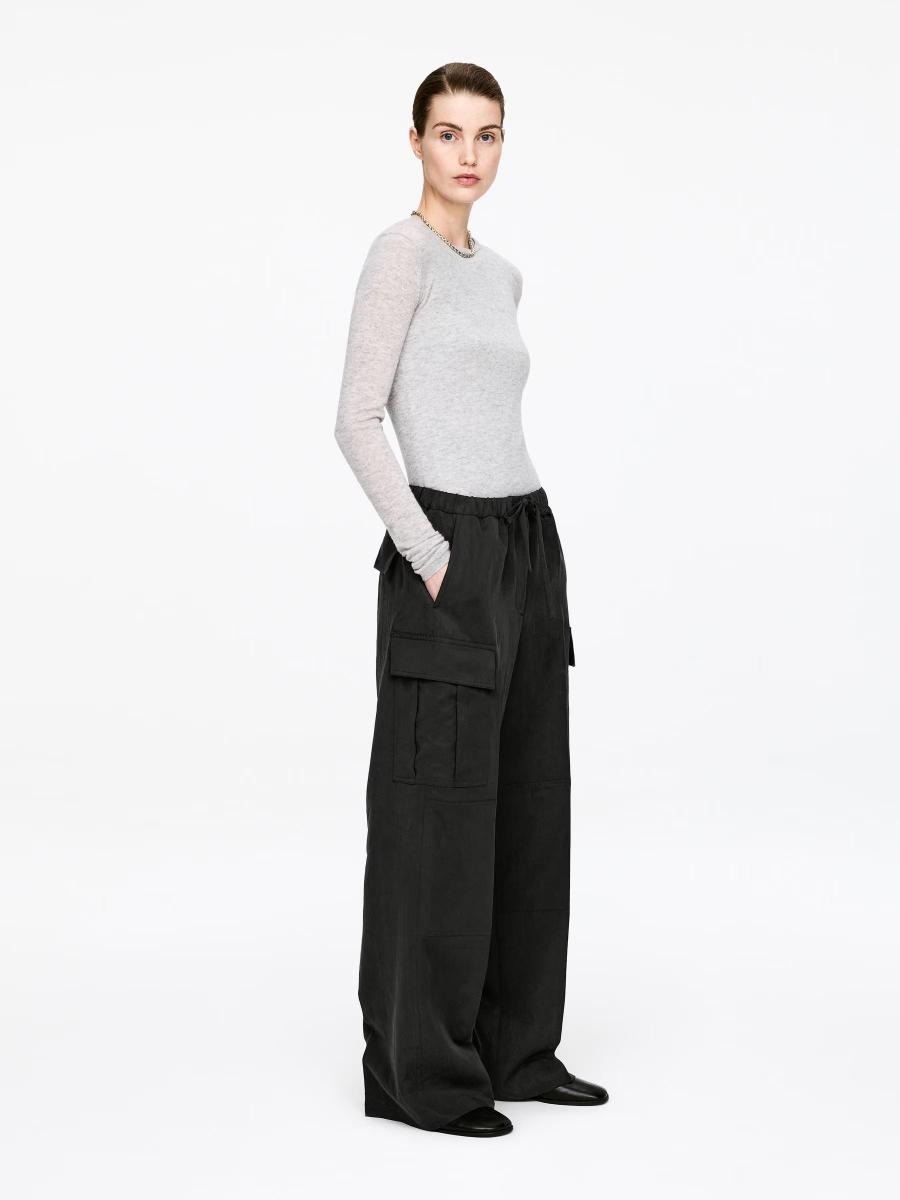 Fluid cargo trousers designed with a drawstring and elasticated waist. Detailed with slanted side pockets, back flap pockets and leg patch pockets with flaps, finished with reinforced knees. Style casually or elevate with a heel.ARKET/Women's clothes/Women's trousers