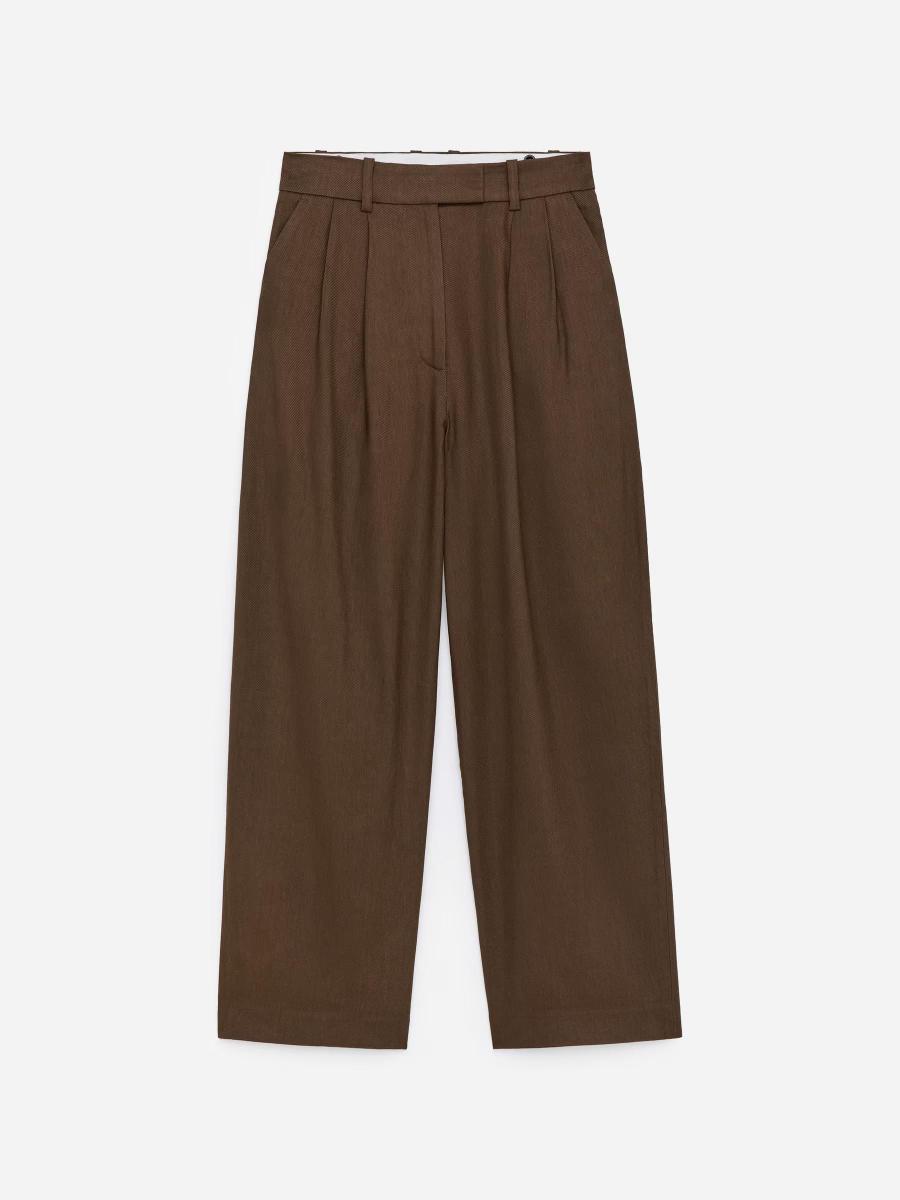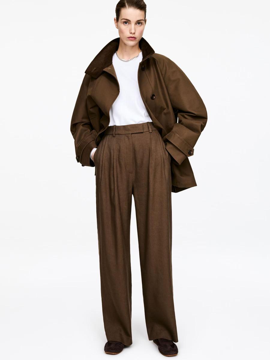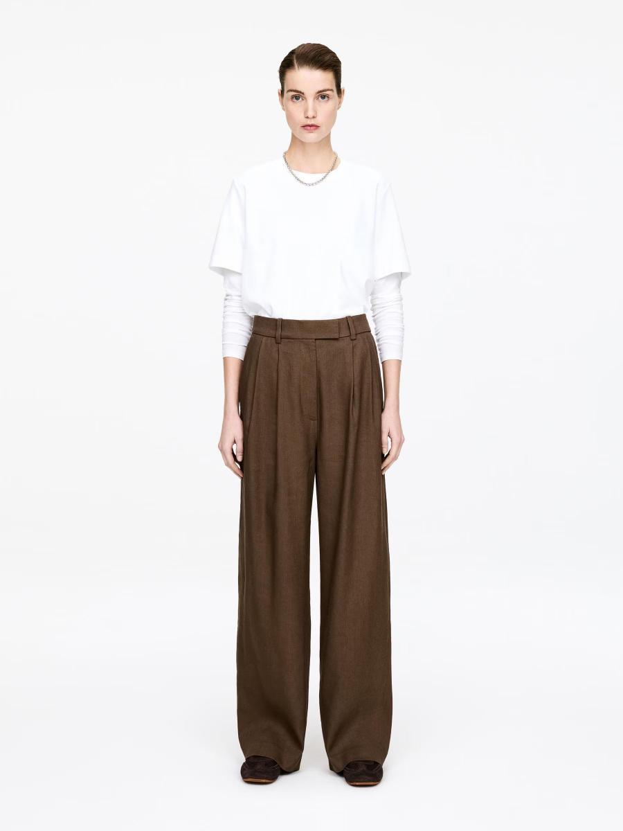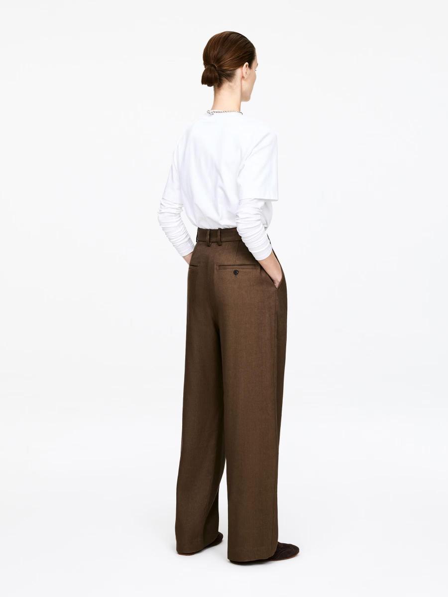 High-waisted tailored trousers with soft pleats and a relaxed, straight wide-leg silhouette. Crafted from a viscose-linen blend, these trousers are designed with a waistband featuring adjustable elastics, side pockets and back pockets finished with button detailing.ARKET/