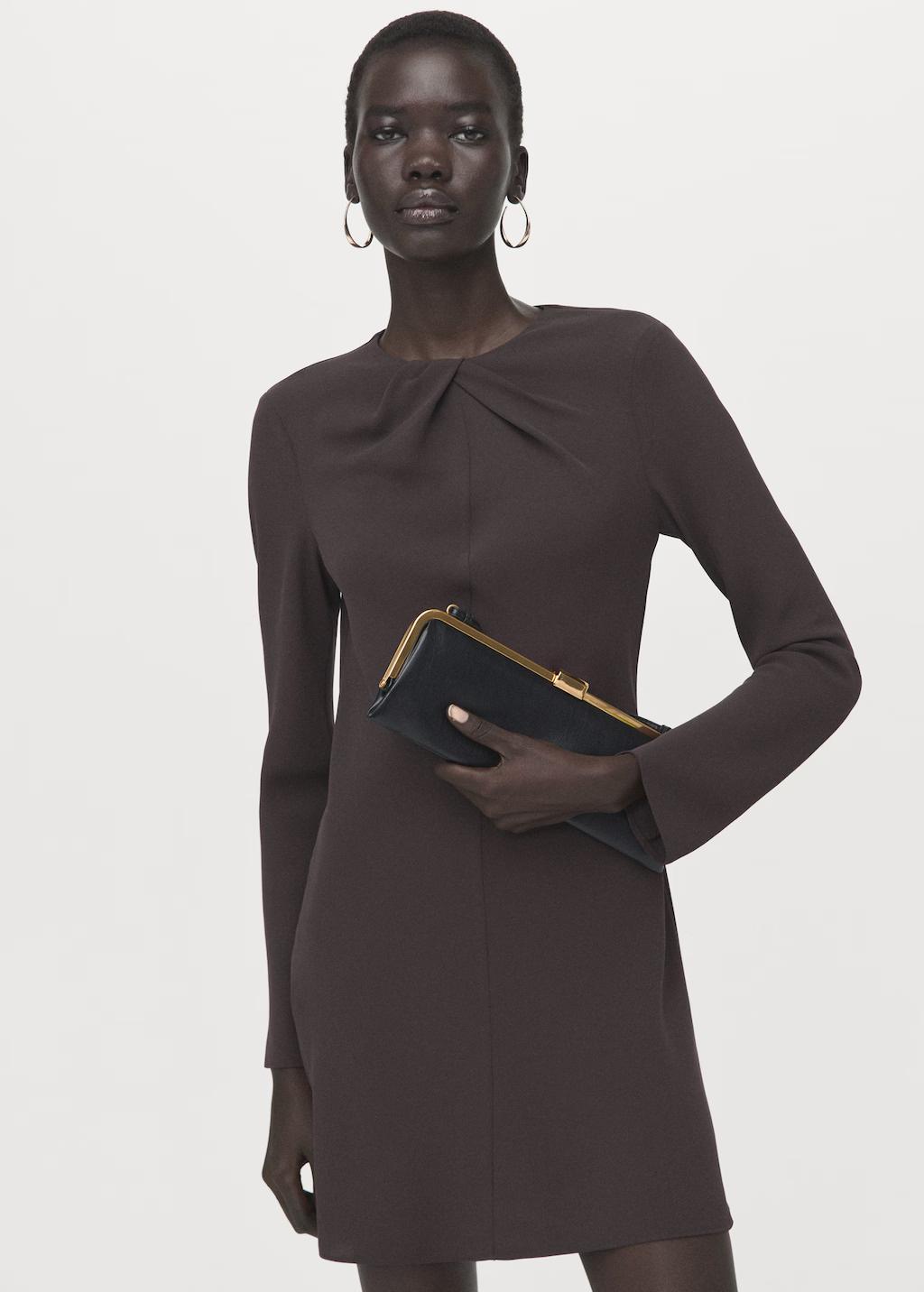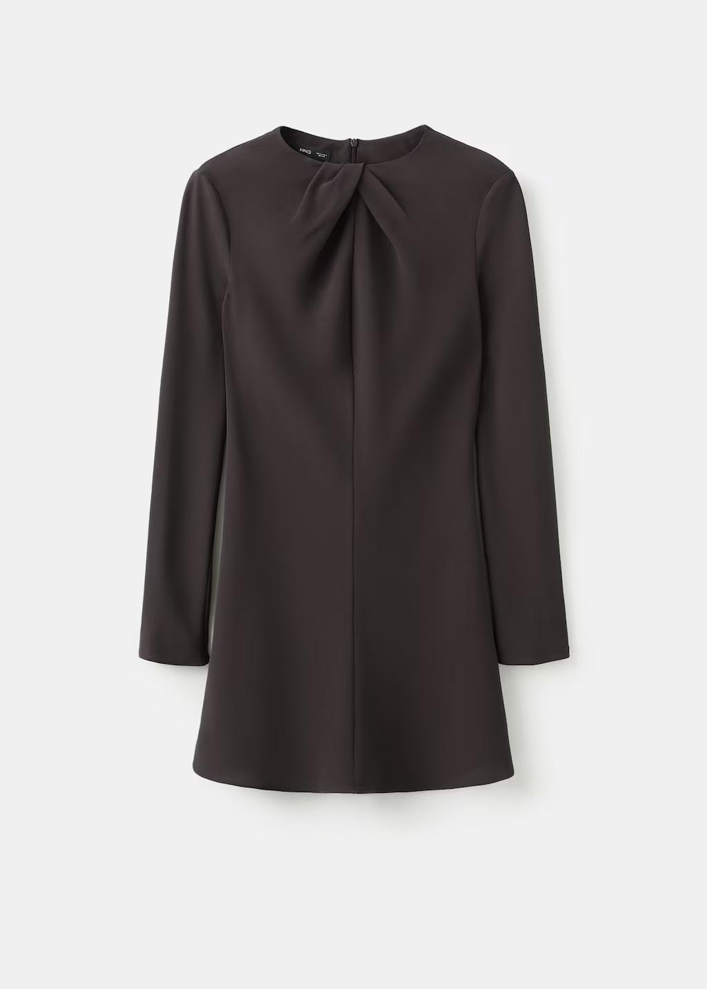 Vestido cuello drapeado manga larga