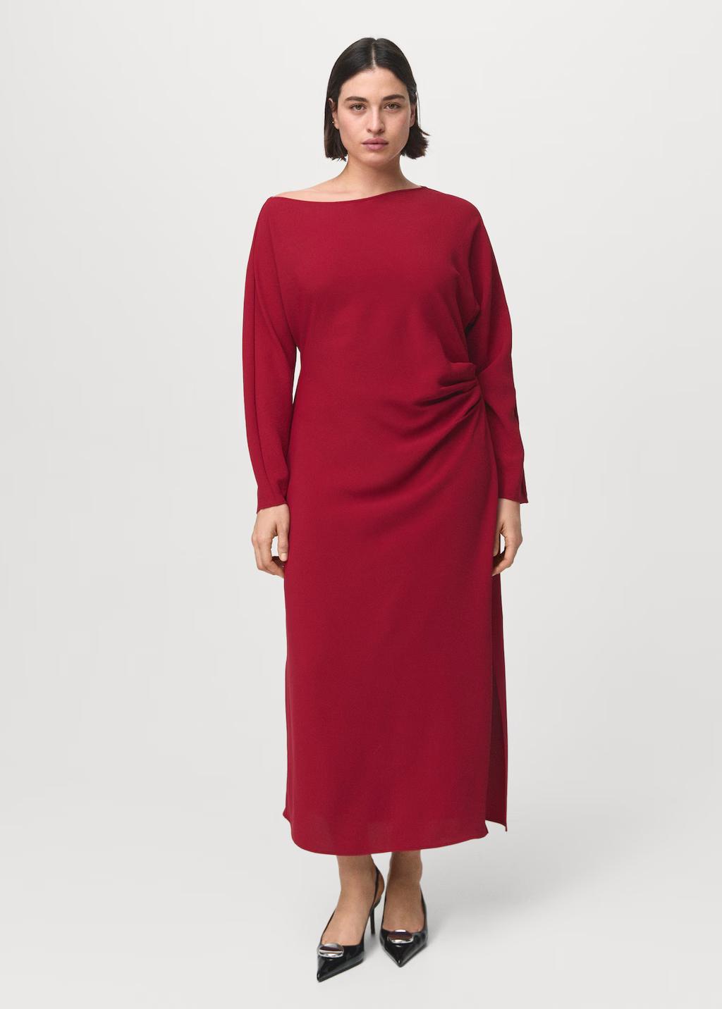 Vestido cuello barco fruncidos
