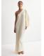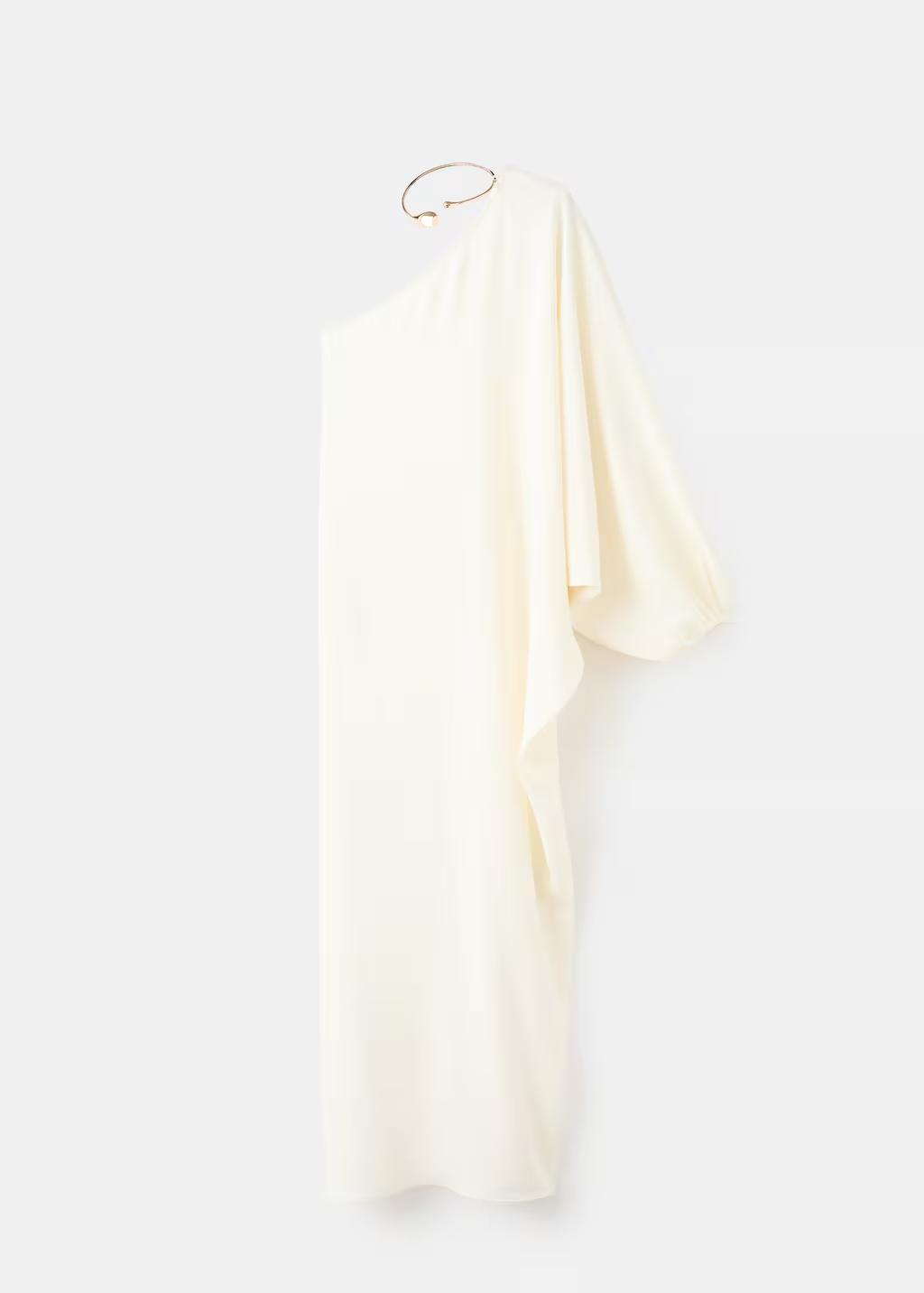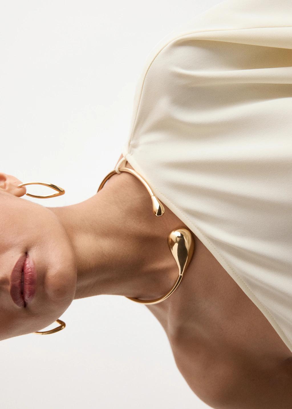 Diseño largo. Diseño oversize. Detalle collar cuello. Cuello asimétrico. Manga larga abullonada. Apertura en la parte central del bajo. Cierre de cremallera lateral. Esta prenda pertenece a nuestra colección de fiesta y evento, diseñada para elevar tus looks en ocasiones especiales