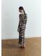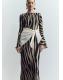 Diseño midi. Diseño evasé. Estampado de cebra. Cuello redondo. Manga larga. Sin cierre. Forro interior