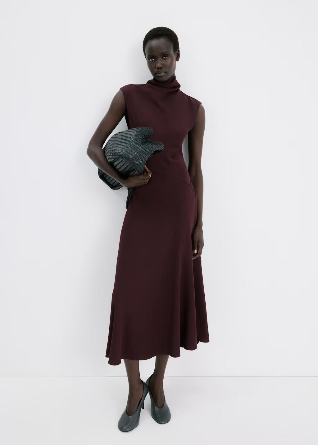Vestido largo cuello drapeado