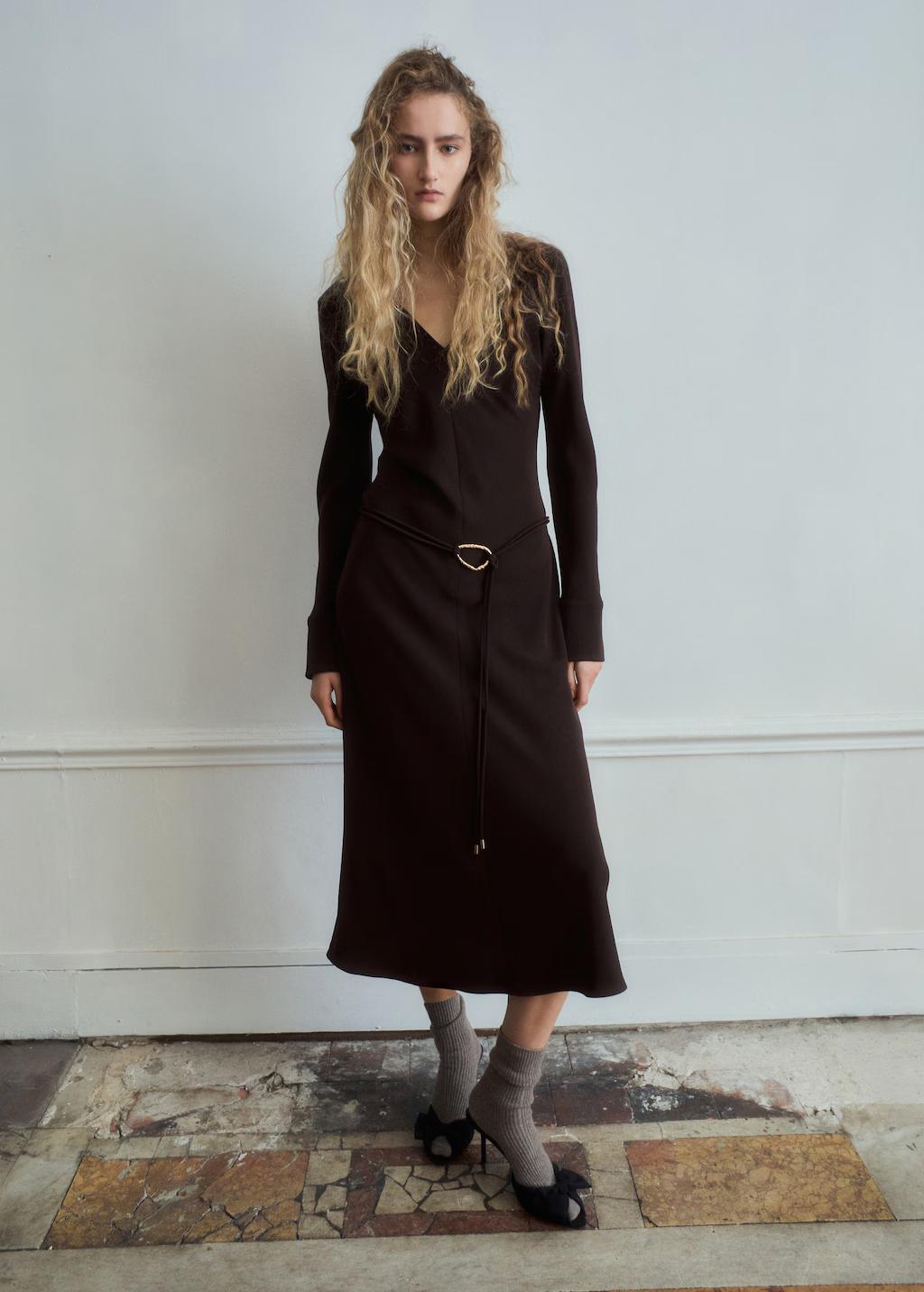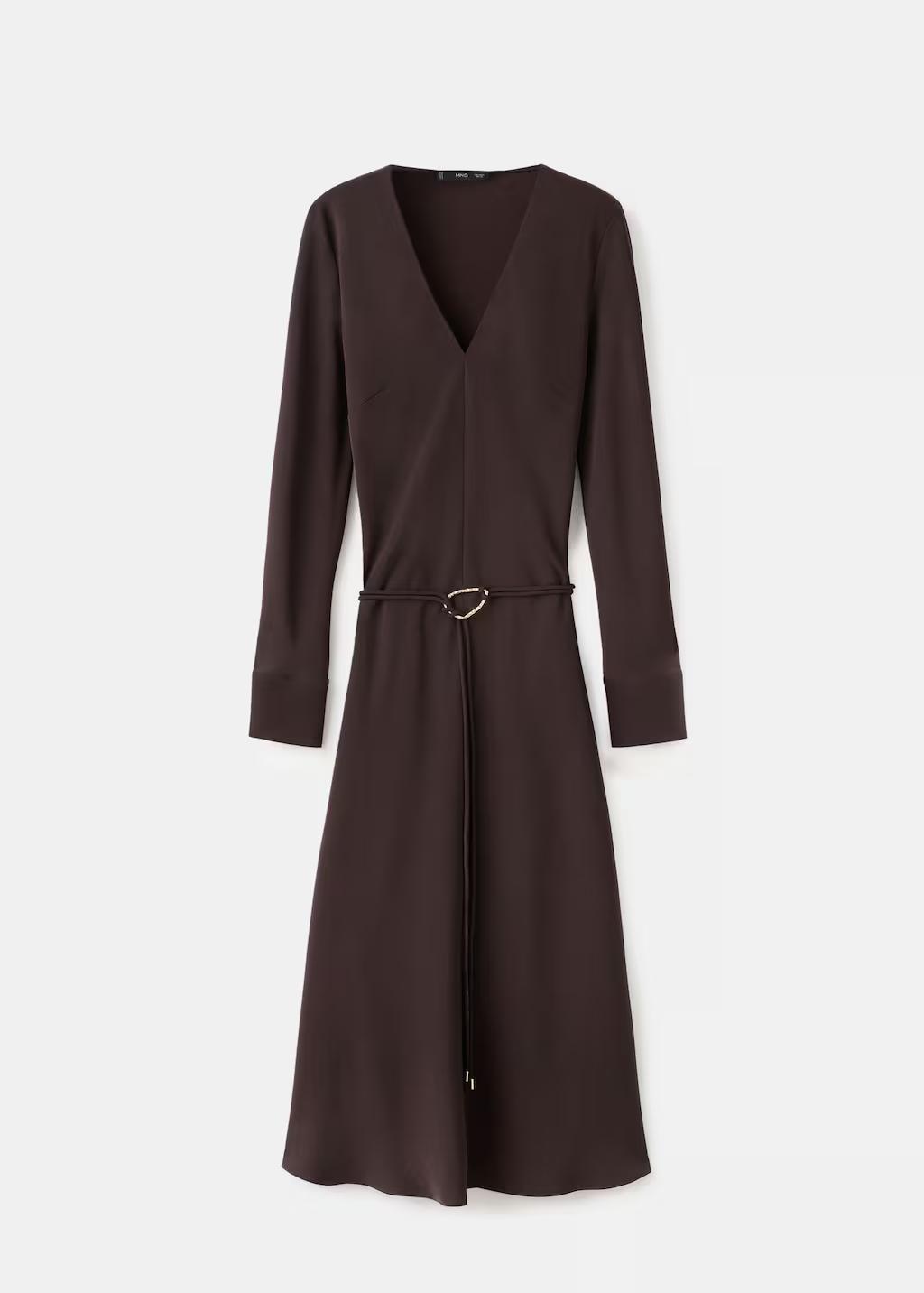 Diseño largo. Diseño recto. Cuello pico. Manga larga. Cinturón decorativo. Sin cierre. El color rojo es exclusivo online