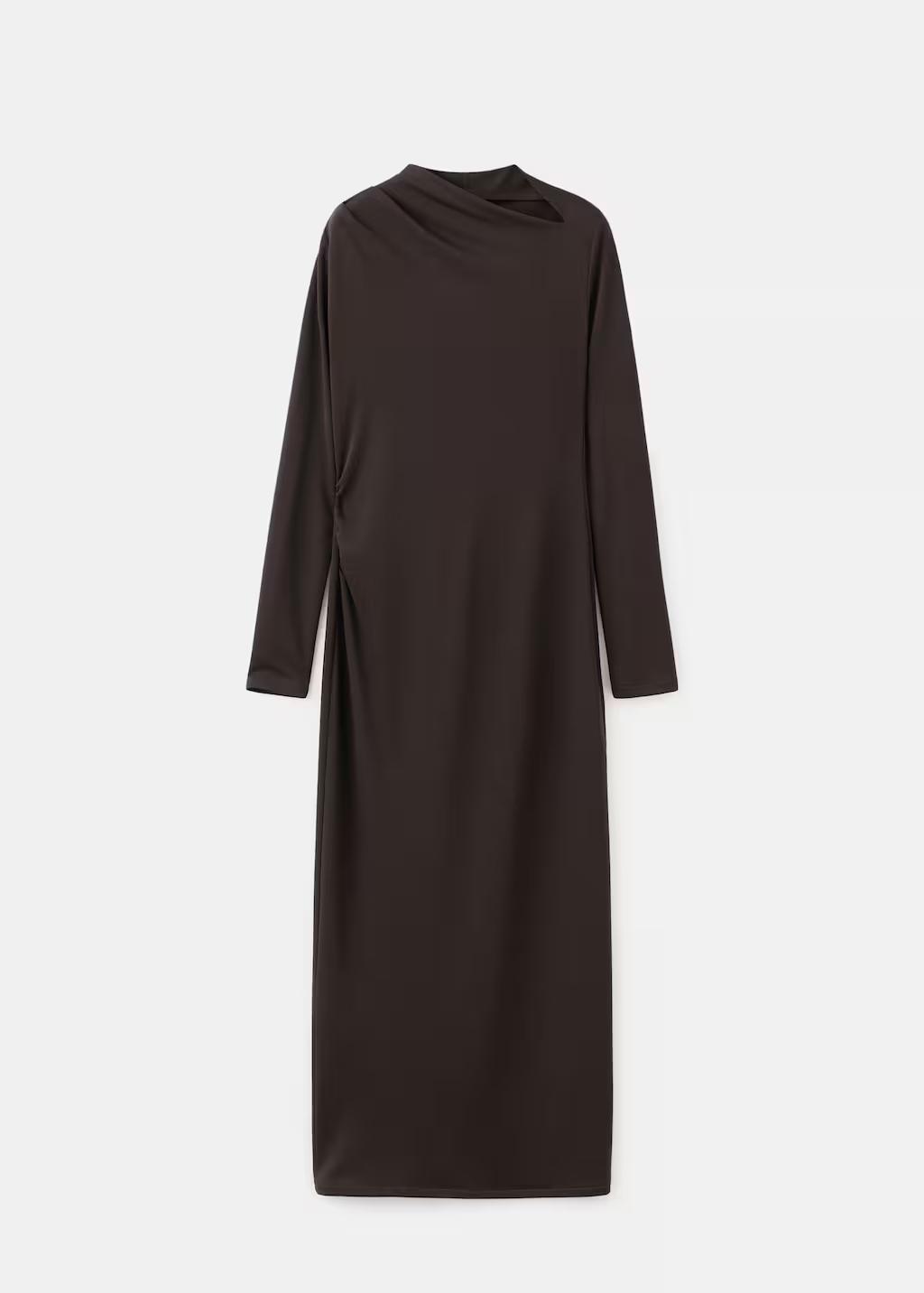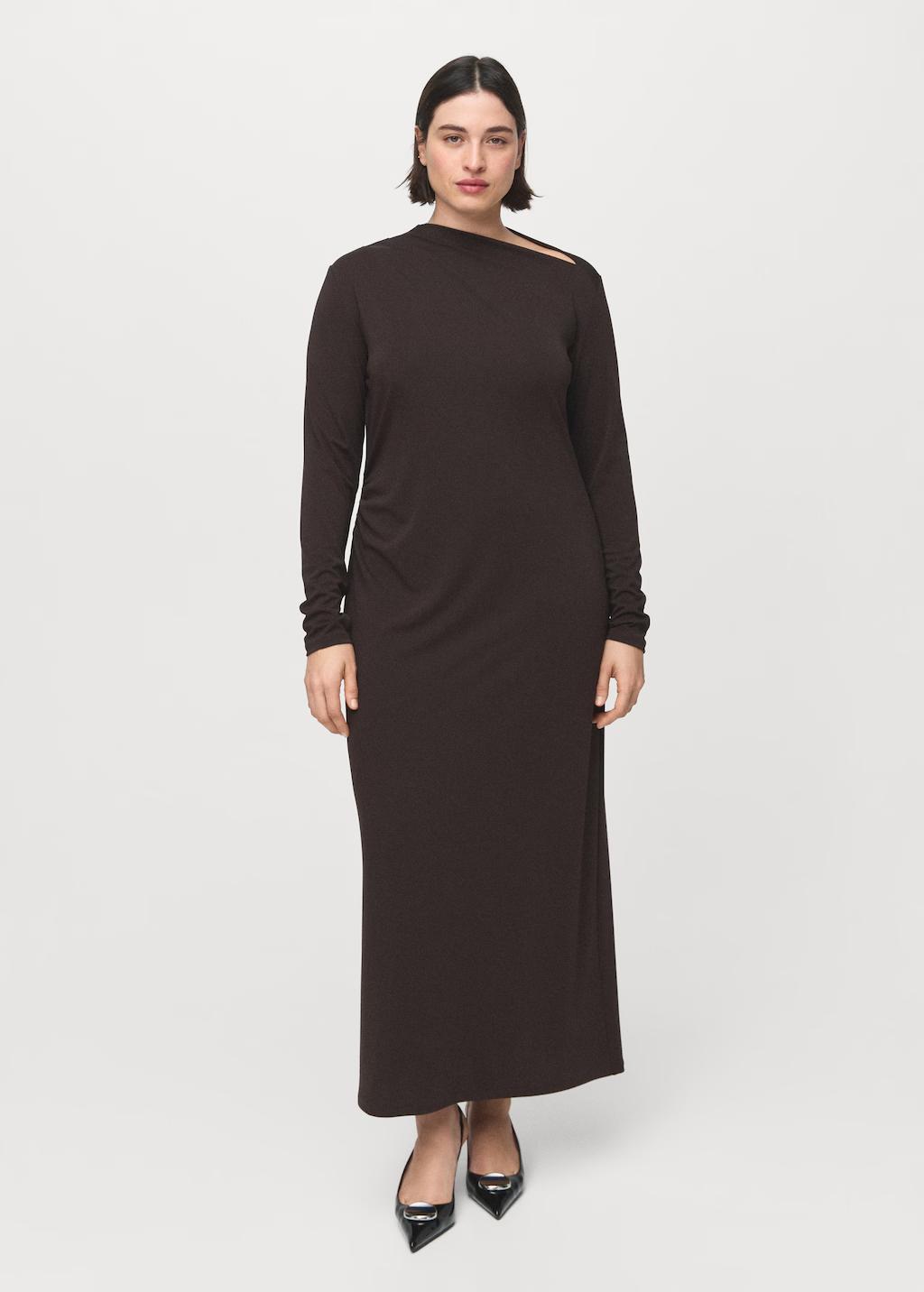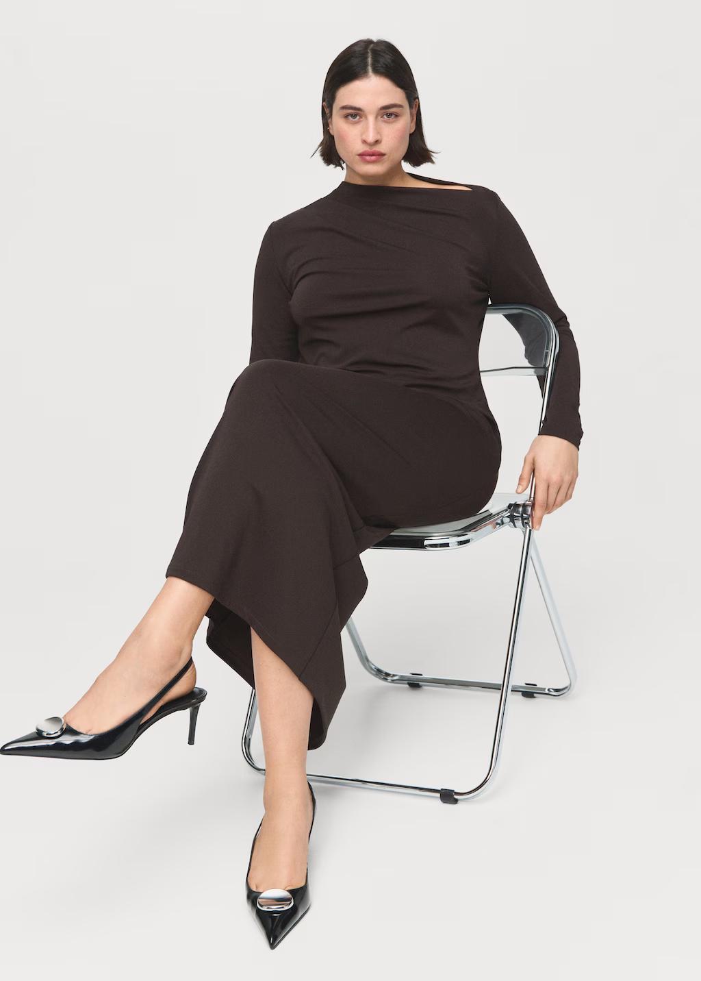 Diseño recto. Diseño largo. Detalle fruncido. Cuello barco. Manga larga. Sin cierre. Disponible Plus