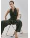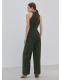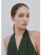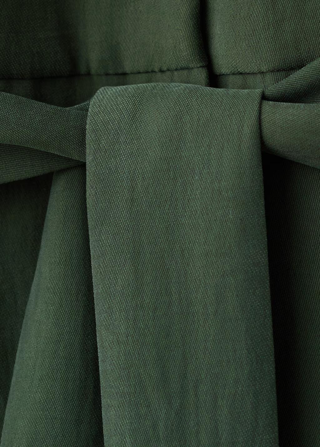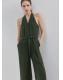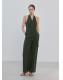 Diseño largo. Diseño recto. Cuello halter. Escote de pico. Sin mangas. Tirantes anchos. Trabillas. Cinturón tipo lazo en la cintura. Cinturón ajustable. Cierre de botones en la parte delantera
