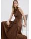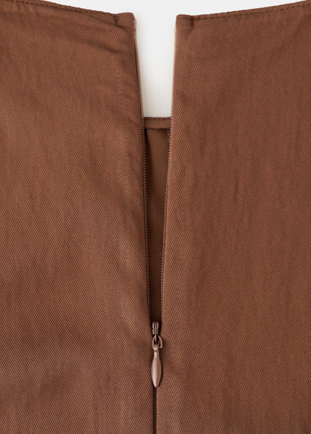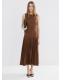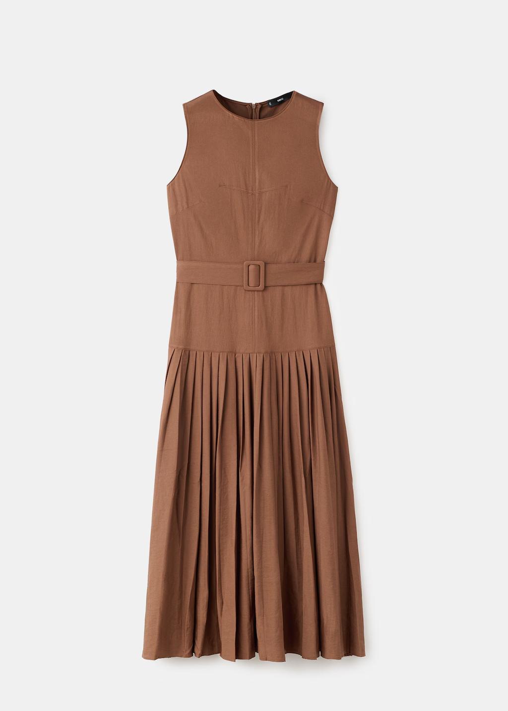 Diseño evasé. Diseño midi. Cuello redondo. Sin mangas. Tirantes anchos. Falda con pliegues. Detalle cinturón en la cintura. Cierre de cremallera en la parte posterior. Forro interior