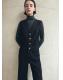 Tejido de algodón estilo tejano vaquero. Diseño largo. Diseño recto. Cuello pico. Sin mangas. Tirantes anchos. Trabillas. Cinco bolsillos. Cierre delantero con botones
