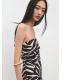 Diseño largo. Diseño recto. Estampado cebra. Palabra de honor. Sin mangas. Cierre de cremallera en la parte posterior. Forro de algodón. Esta prenda pertenece a nuestra colección de fiesta y evento, diseñada para elevar tus looks en ocasiones especiales