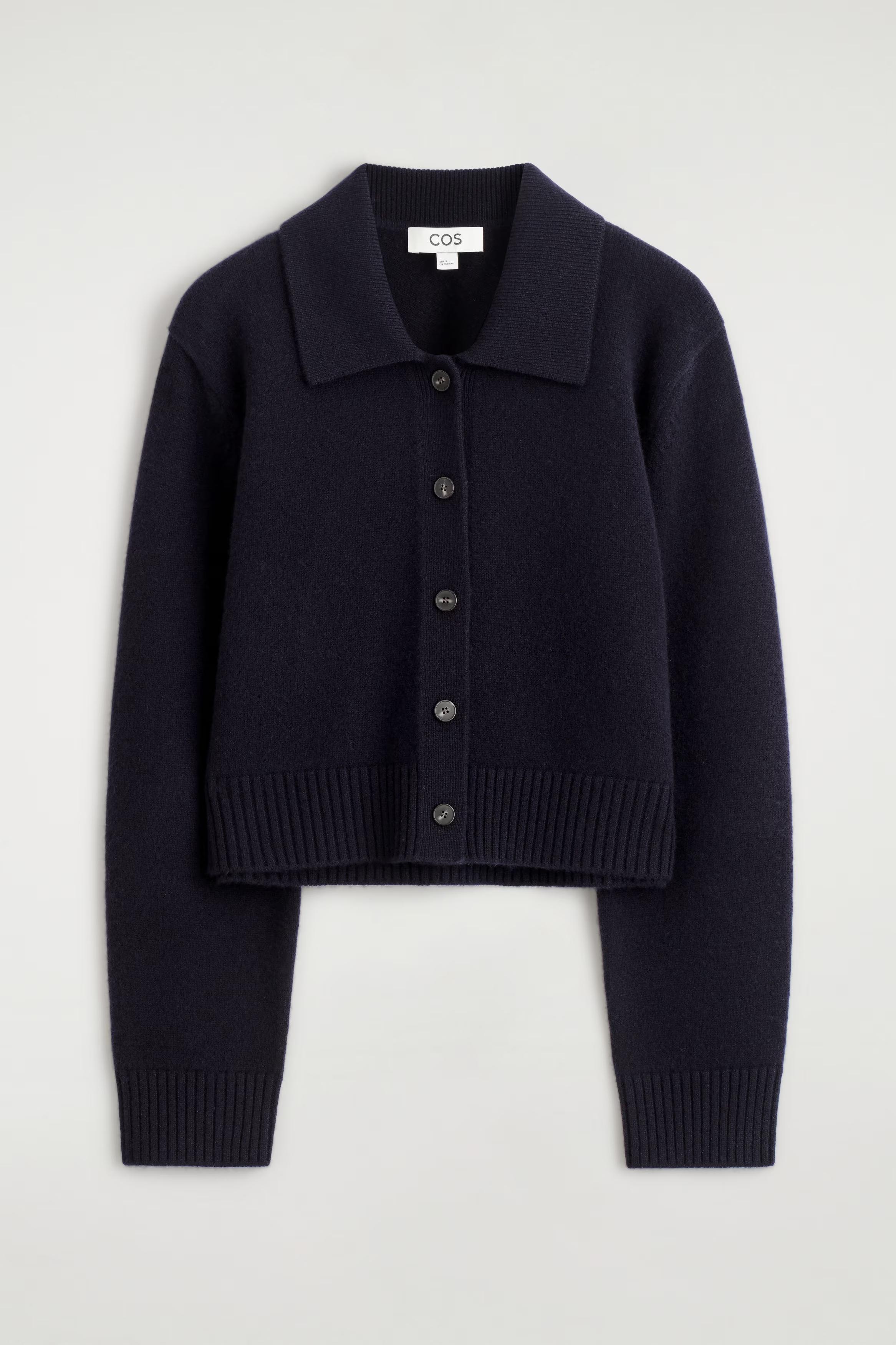 Offered in rich navy, this cardigan is knitted from merino wool that's chosen for its ultra-soft handle and features a classic collar and a neat row of buttons. The cuffs and hem are ribbed for tactility. Pair it back with classic denim.\u0026nbsp;Regular fitButton closure\u0026nbsp;Shell: 100% Merino wool. Excluding trims / Machine wash\u0026nbsp;Back length of size S is 49cm / Model wears a size S