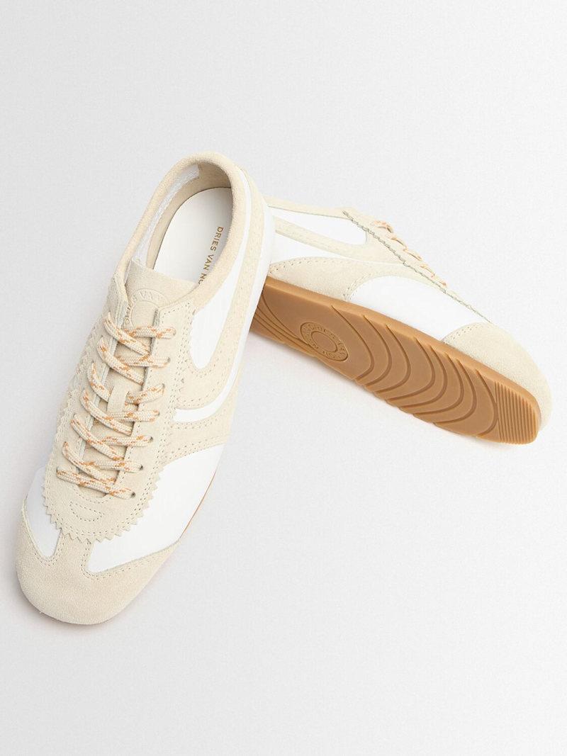 皮革低帮运动鞋 - 白色/米黄色 - 女士 - Dries Van Noten - 皮革鞋面.