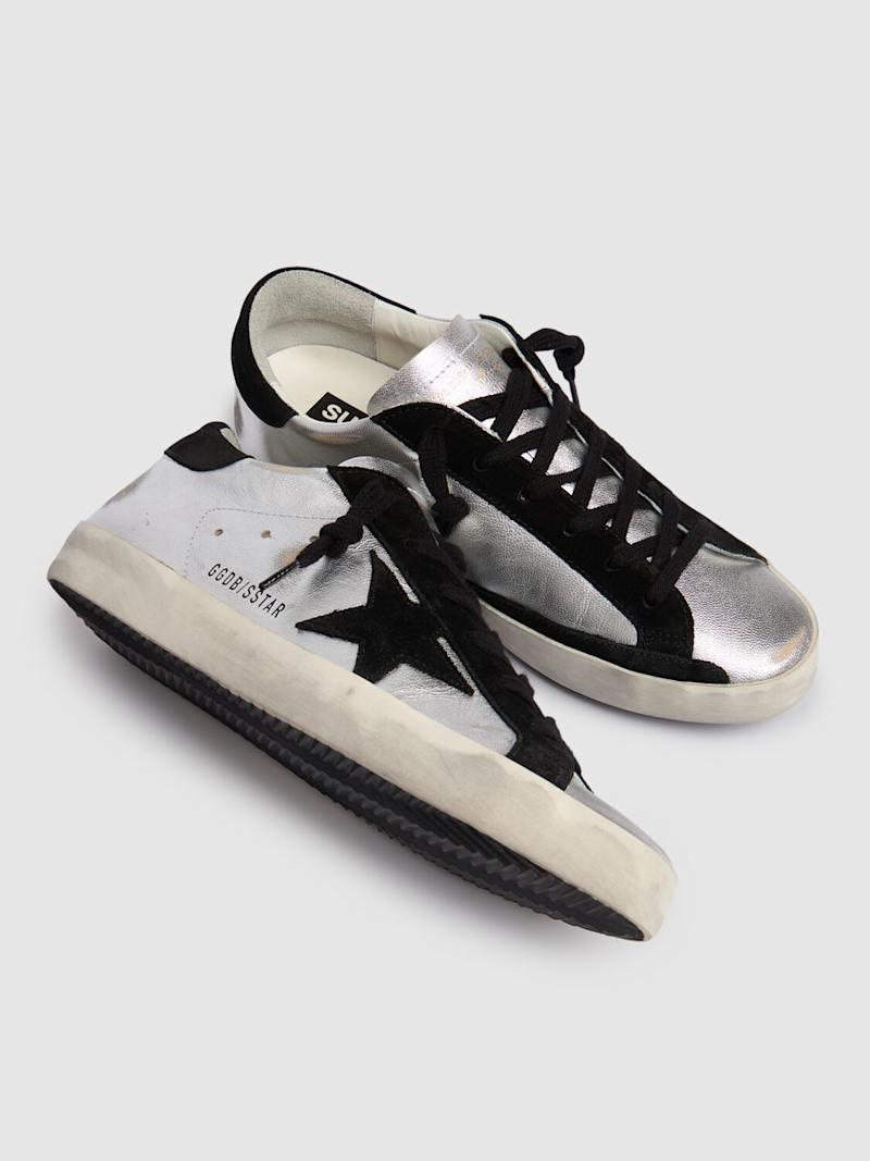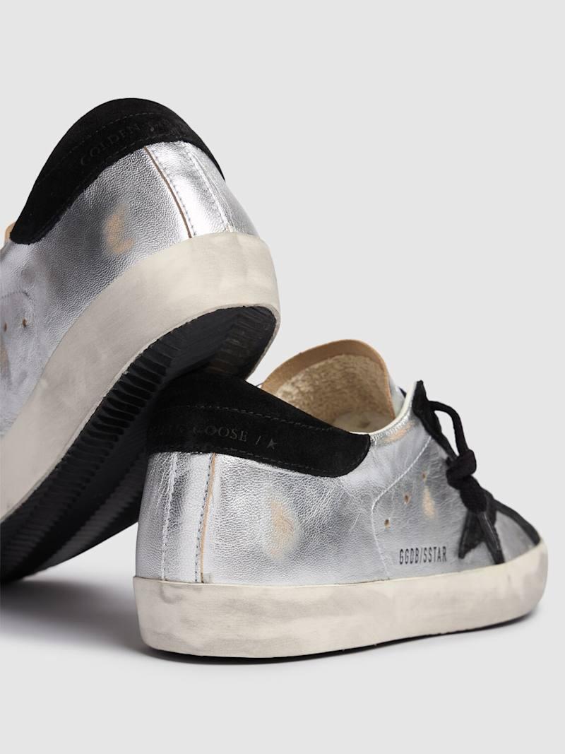 20毫米Super-Star金属色皮革运动鞋 - 银色/黑色 - 女士 - Golden Goose - 20毫米橡胶鞋底.