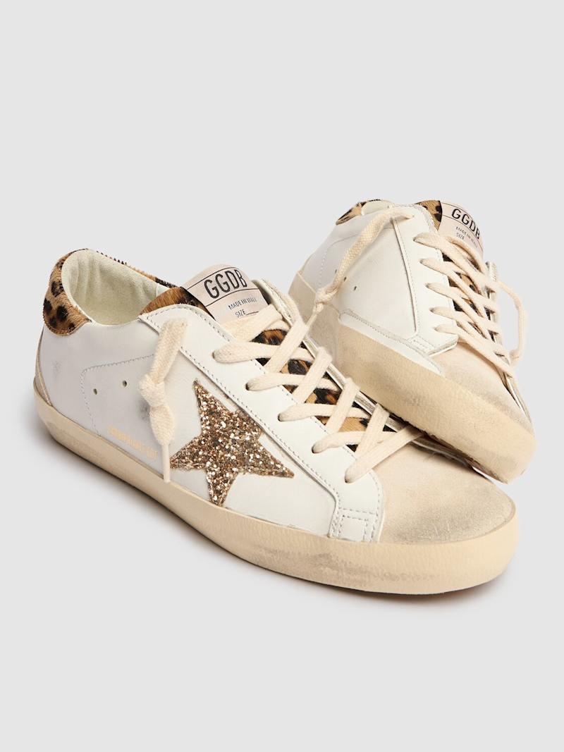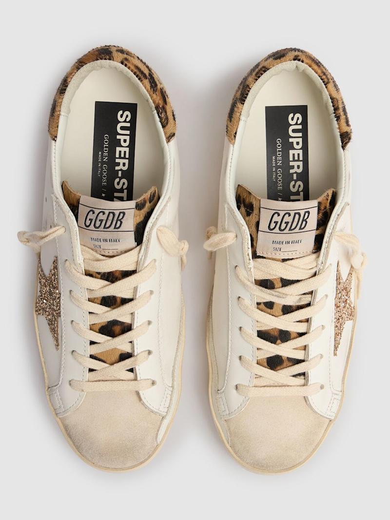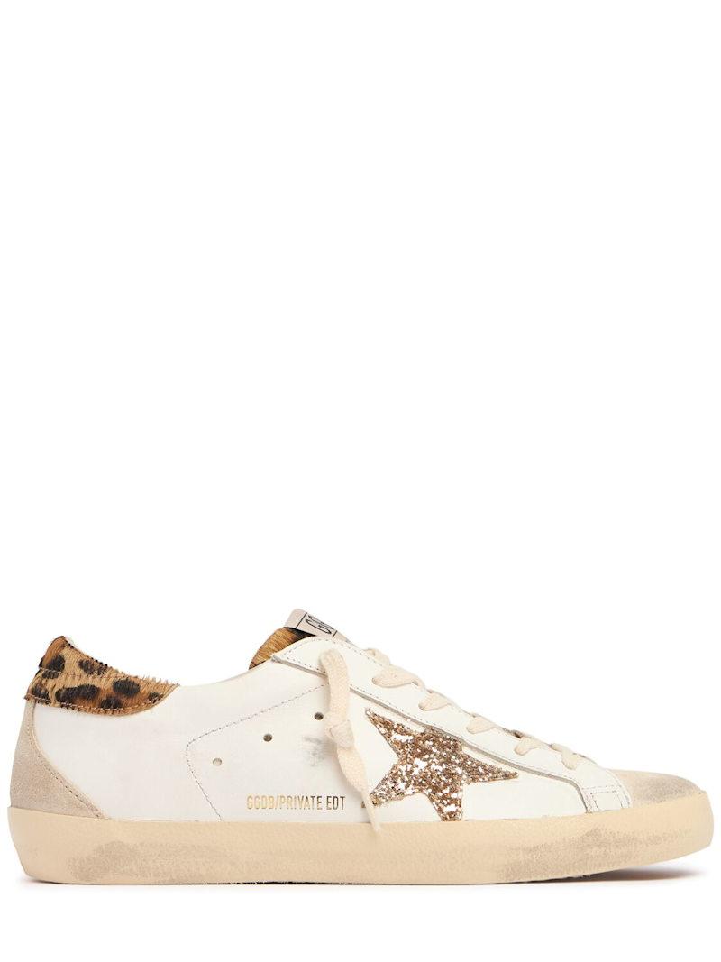LVR独家Super-Star麂皮运动鞋 - 白色豹纹 - 女士 - Golden Goose - 正面系带开合.