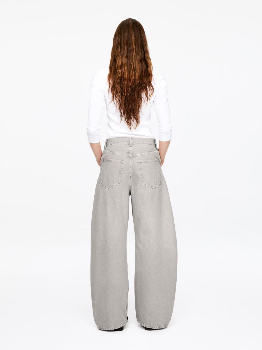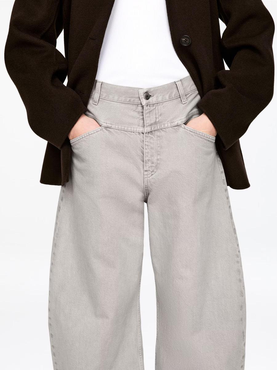Overdyed cotton denim trousers with a front yoke and a relaxed barrel-shaped silhouette, with a voluminous leg that tapers back in at the ankle.ARKET/Women's clothes/Women's trousers
