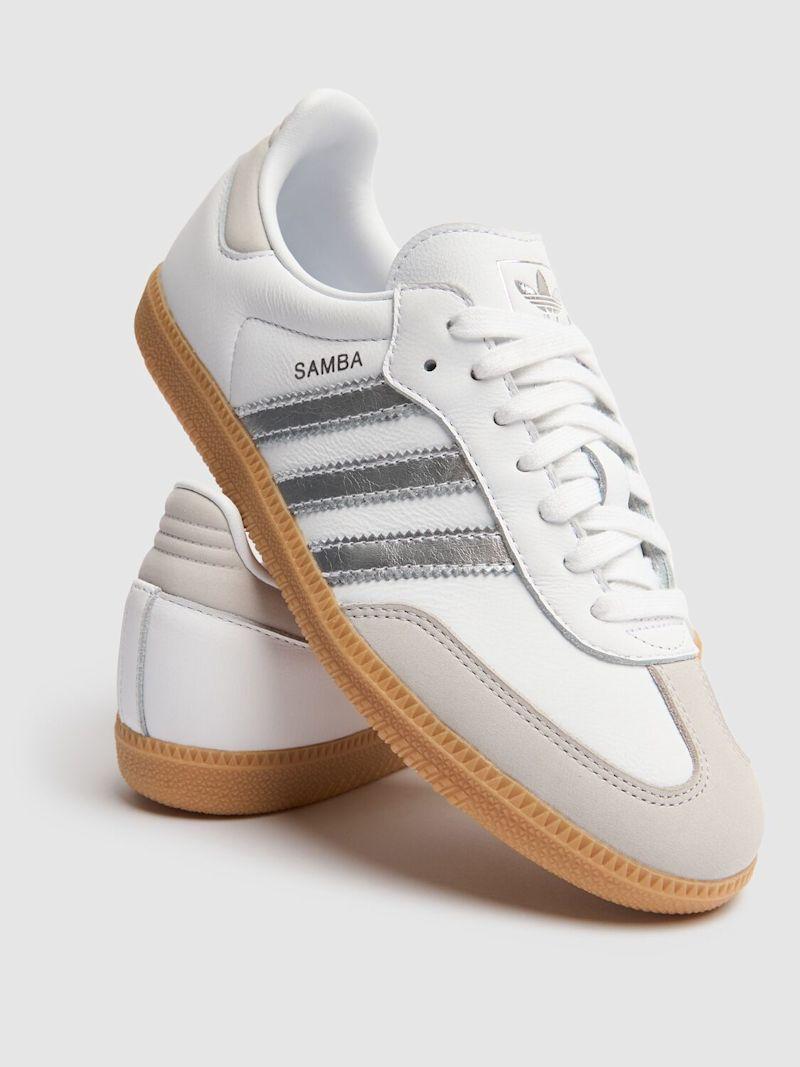 Samba OG运动鞋 - 白色/银色 - 女士 - adidas Originals - 正面系带开合.