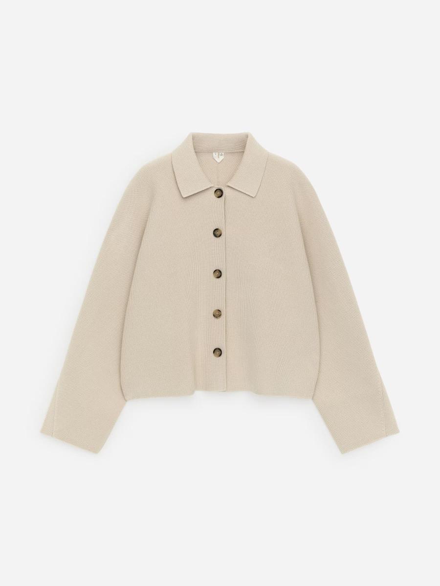 A refined essential, this knitted jacket is crafted from cotton and designed with a classic shirt collar and buttoned front.ARKET/Women's clothes/Women's coats and jackets/Women's jackets