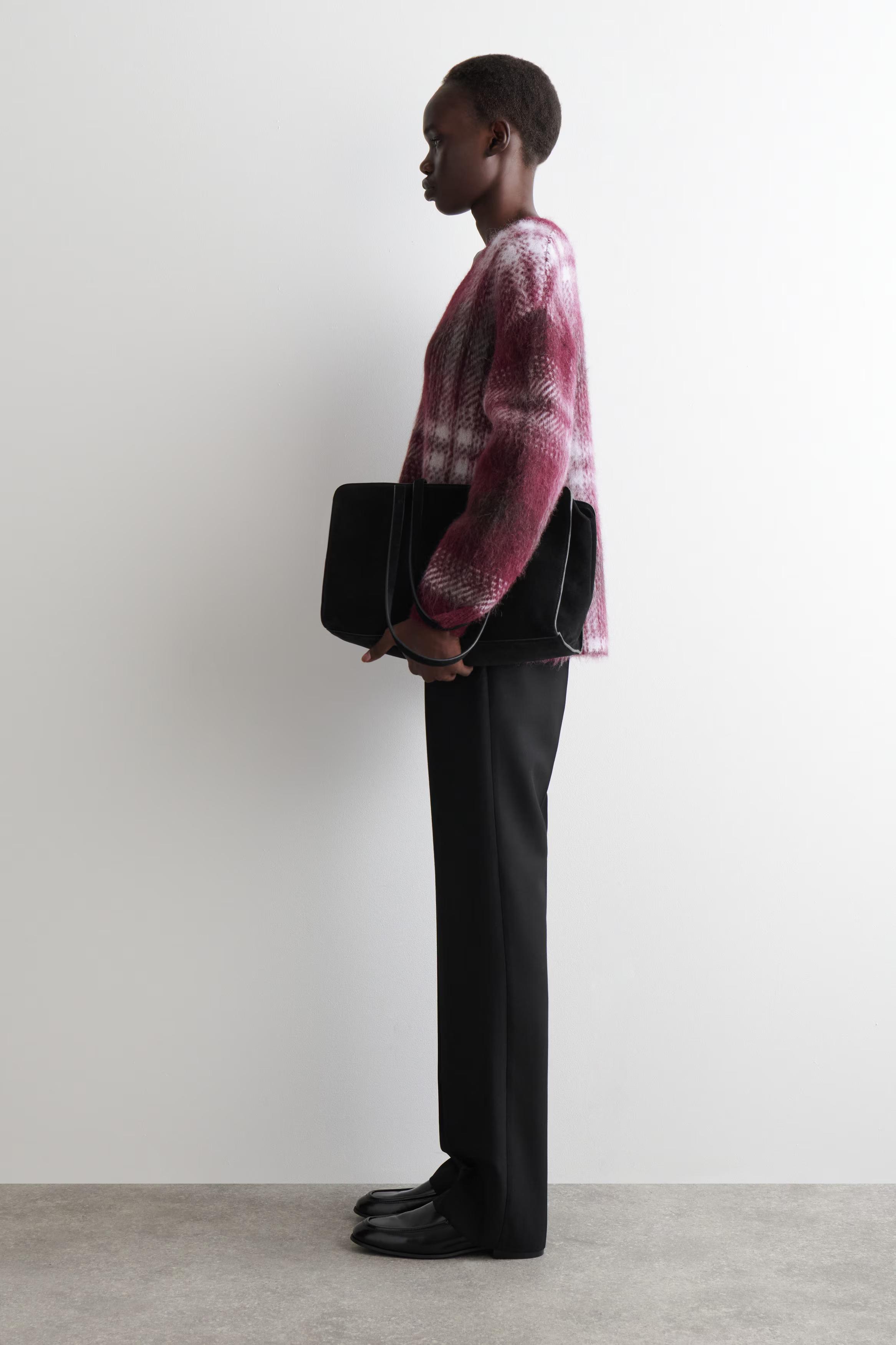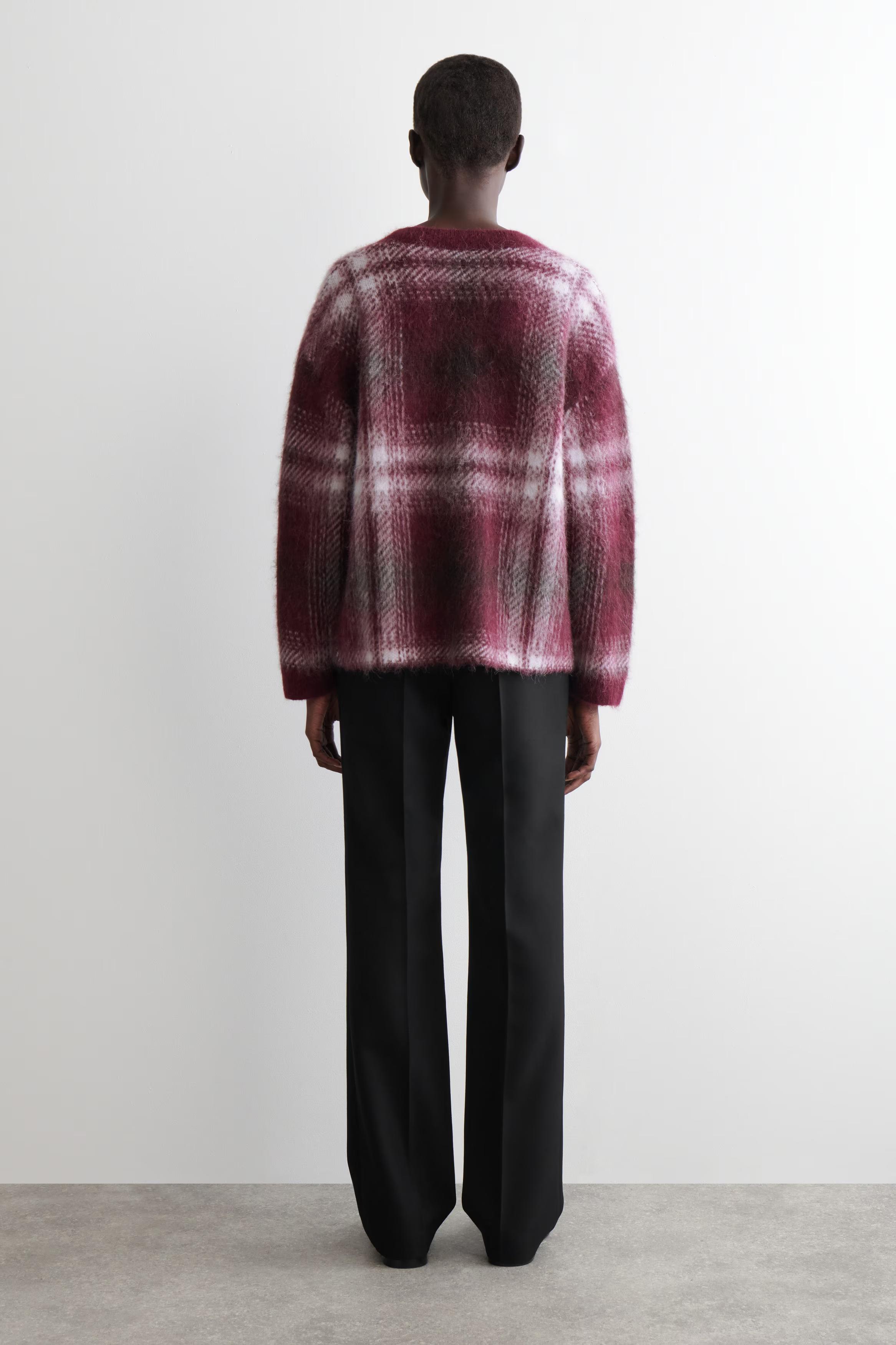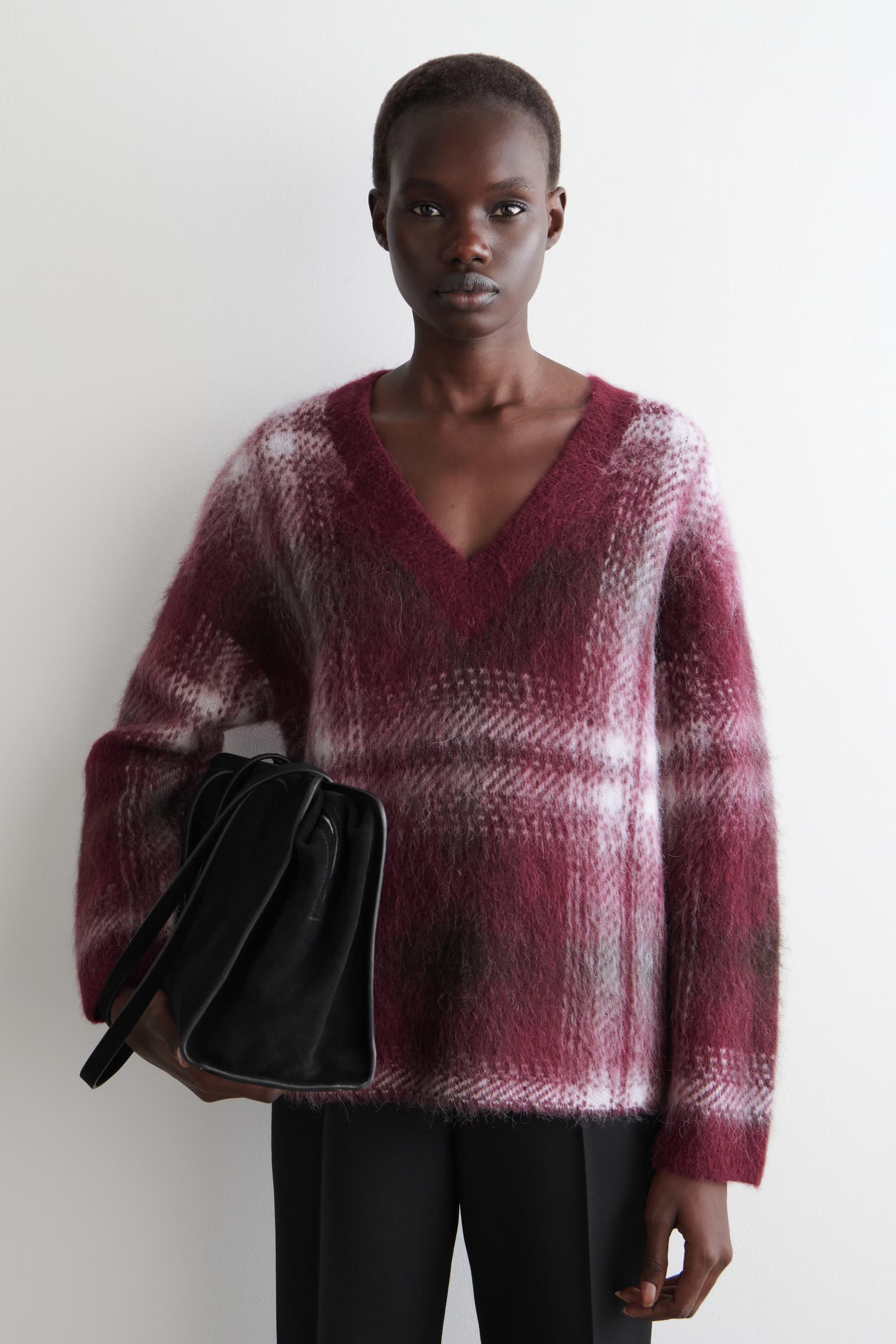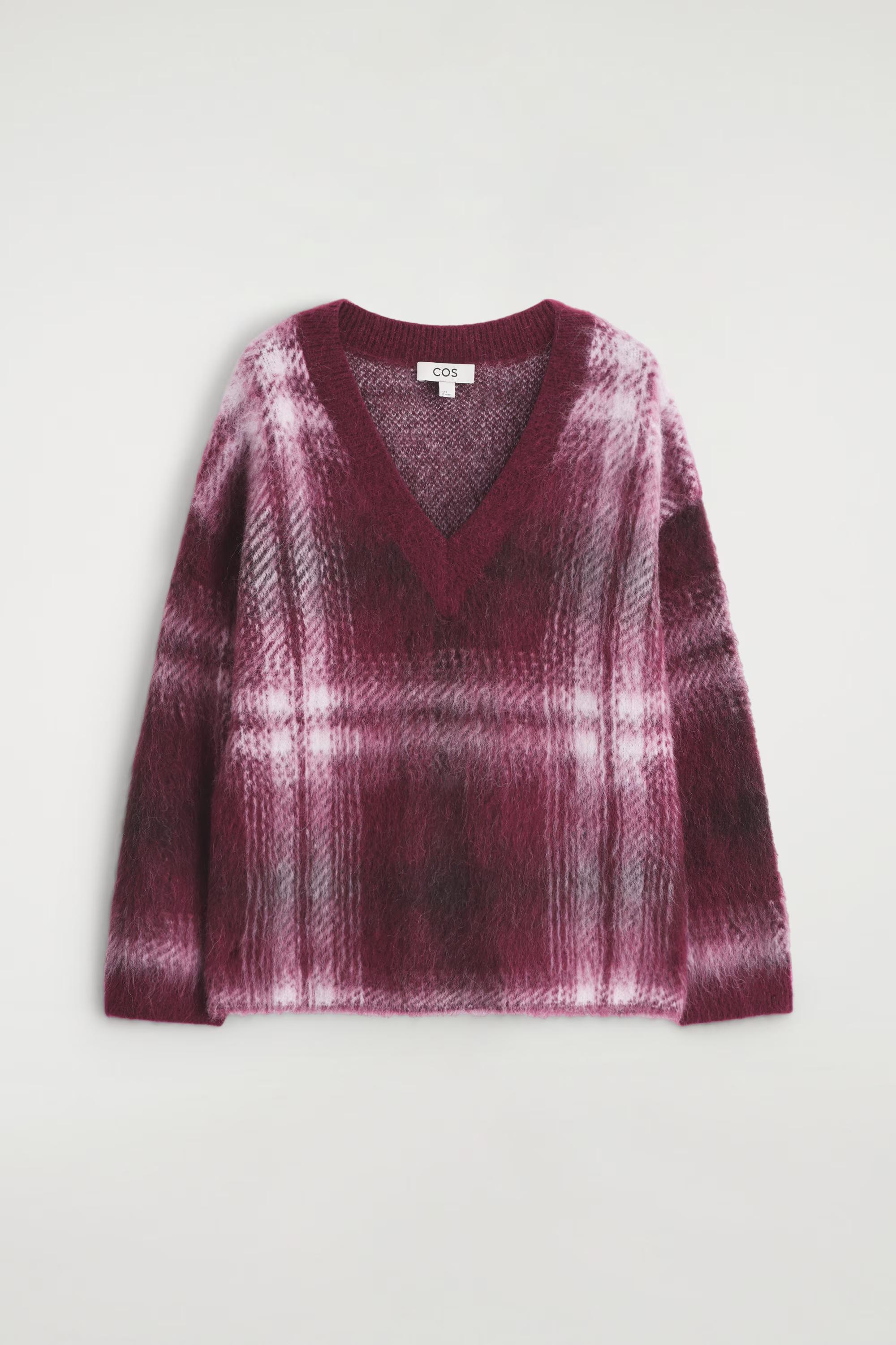 For Autumn Winter 2025, heritage-inspired checks reframe wardrobe signatures with a renewed appeal. This jumper is crafted with luxuriously soft alpaca and wool that's brushed for rich texture and designed with a deep V-neckline. Style it with denim for an effortless look.\u0026nbsp;\u0026nbsp;Regular fitThis product contains Responsible Alpaca Standard TE-00047206 (RAS) alpaca fibre from farms certified to animal welfare and land-management requirements\u0026nbsp;Shell: 38% RAS alpaca, 38% RWS wool, 24% Recycled polyamide (Recycled nylon). Excluding trims / Dry clean\u0026nbsp;Back length of size S is 64cm / Model wears a size S