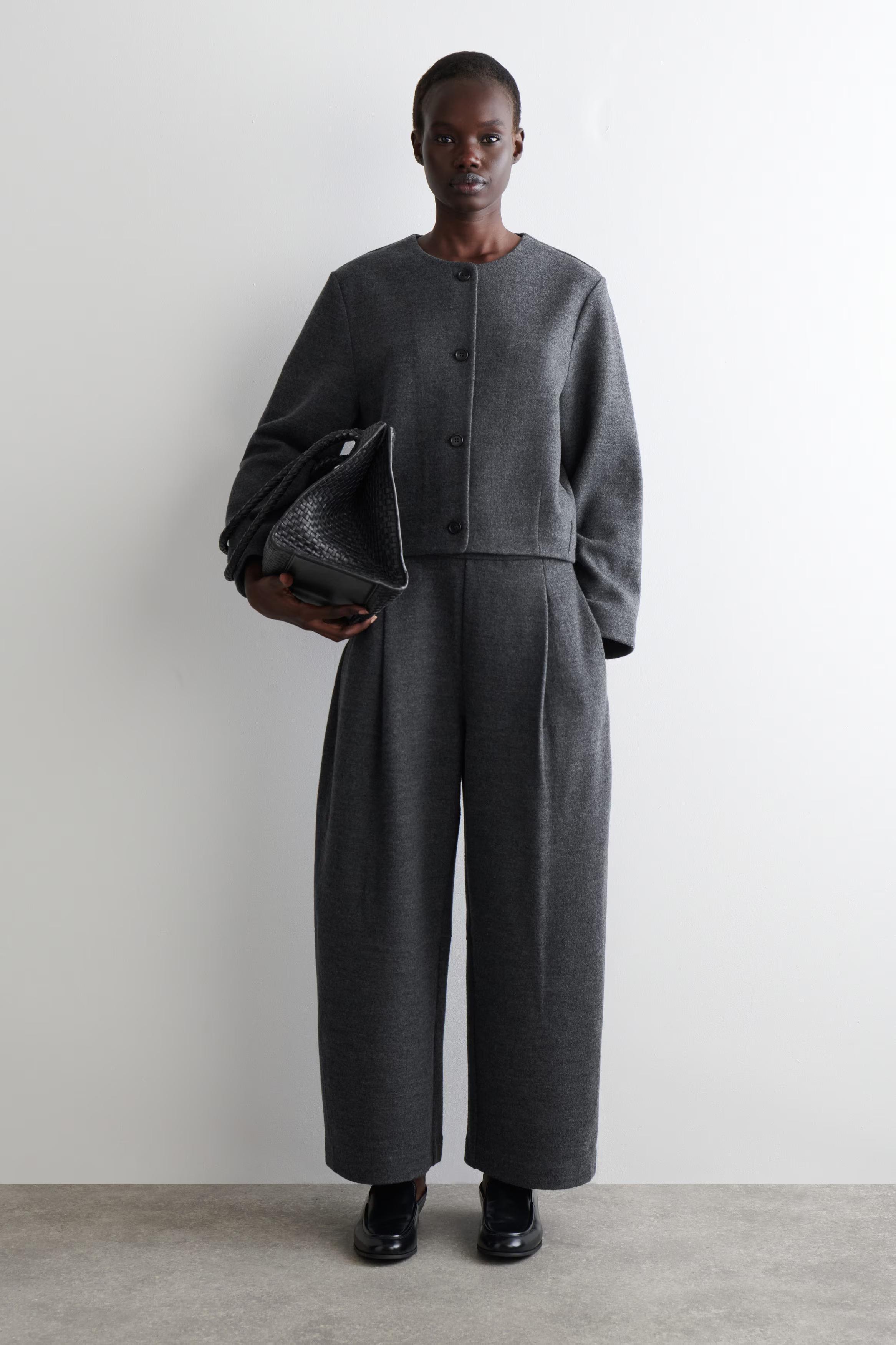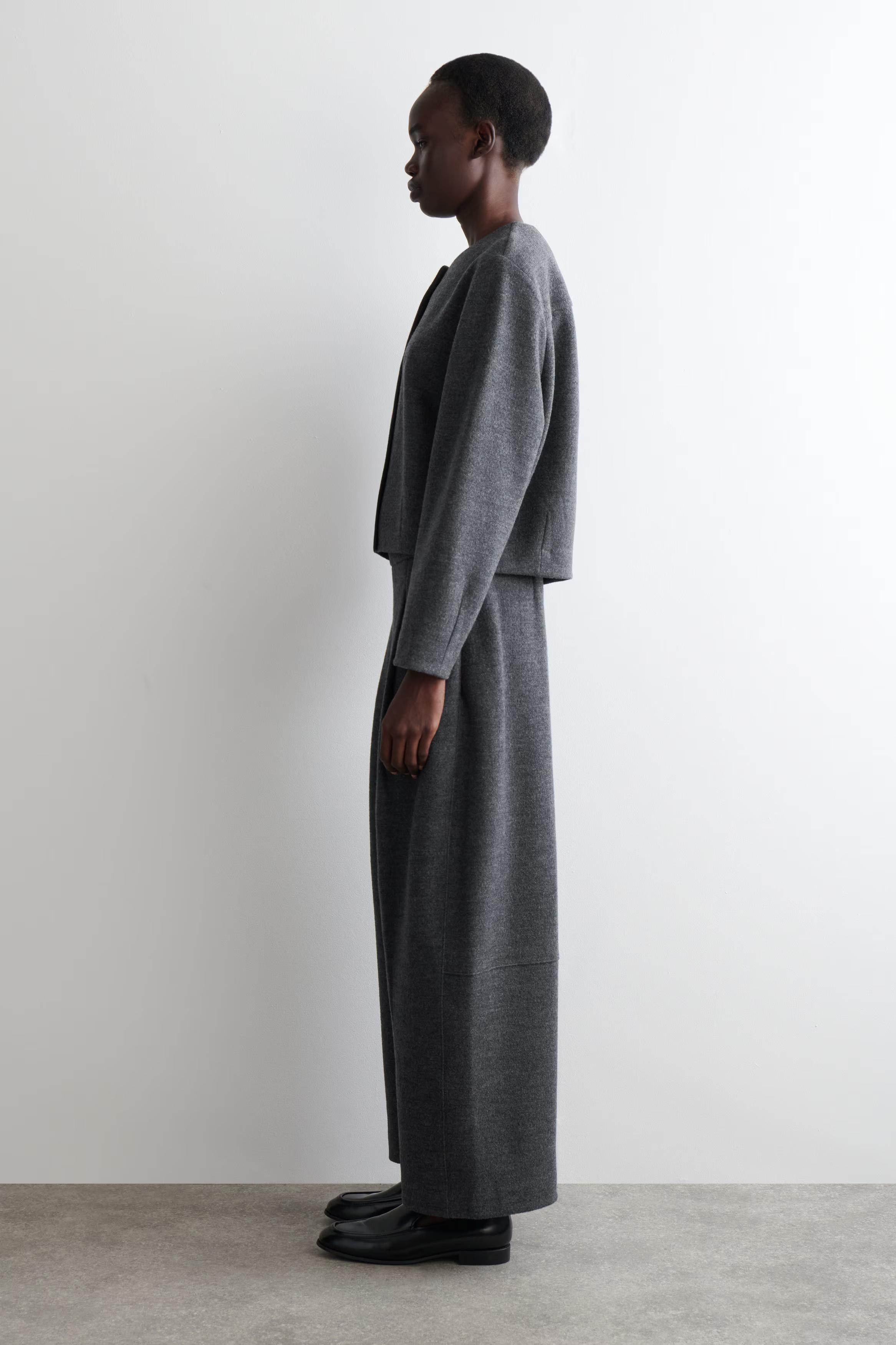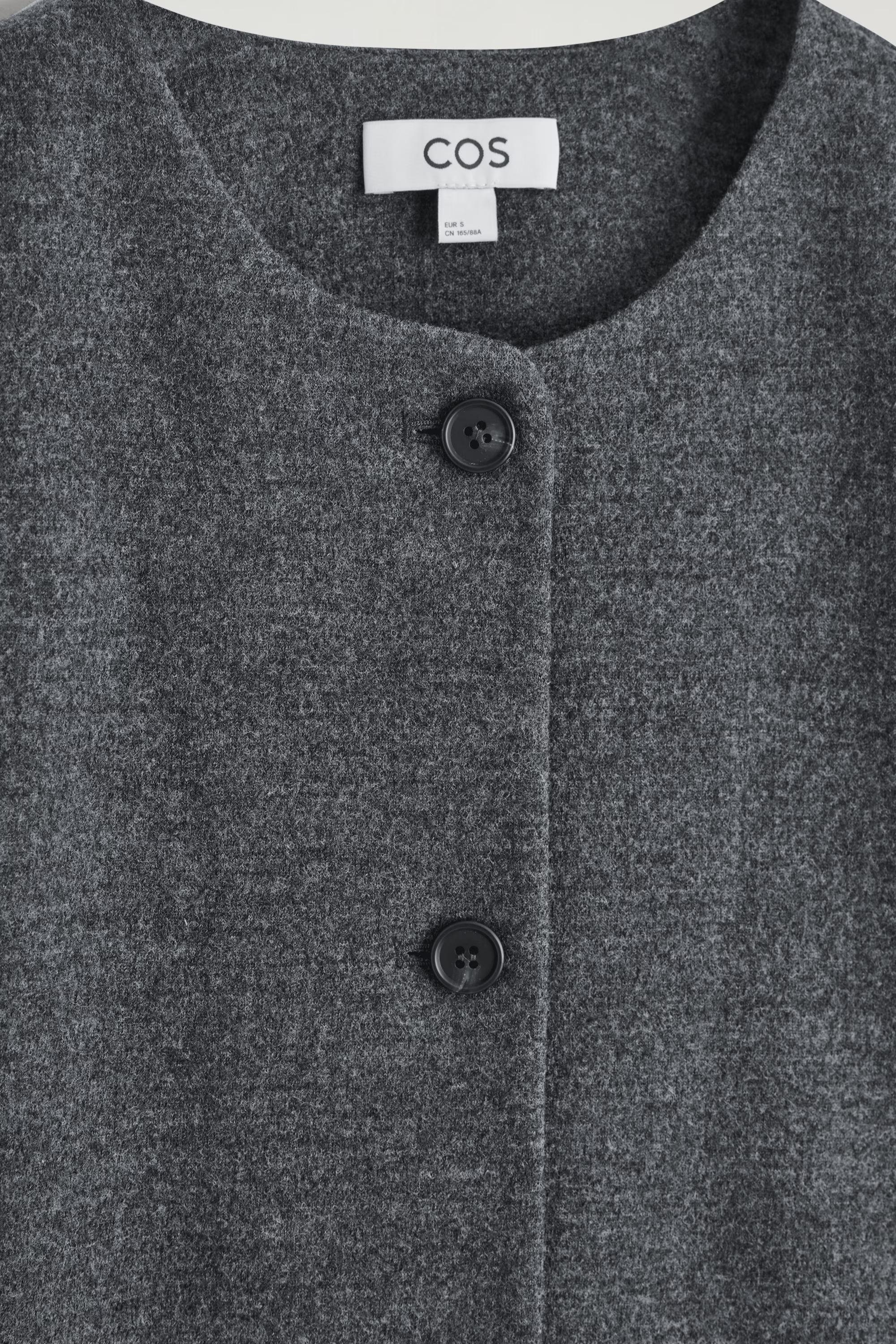 This refined cardigan is a modern expression of '90s minimalism. Perfect for layering, it's crafted from a boiled merino wool blend and shaped in a relaxed silhouette with subtle pockets at either side. Style it as a co-ord with the matching skirt.\u0026nbsp;Relaxed fitButton closureThis product contains Responsible Wool Standard TE-00047206 (RWS) wool fibre from farms certified to animal welfare and land-management requirements\u0026nbsp;Shell: 50% Merino wool, 32% Cotton, 18% Recycled polyester. Excluding trims / Dry clean\u0026nbsp;Back length of size S is 53.2cm / Model wears a size S