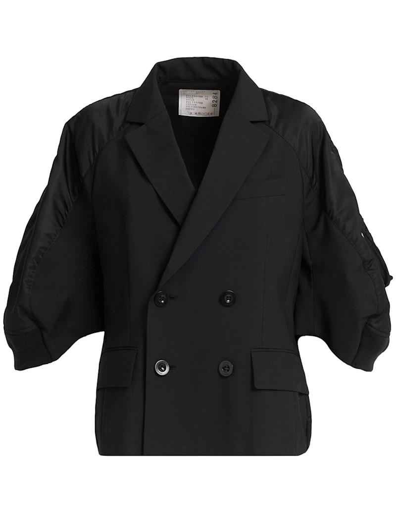 Suiting & nylon twill jacket - 黑色 - 女士 - Sacai - Front button closure.