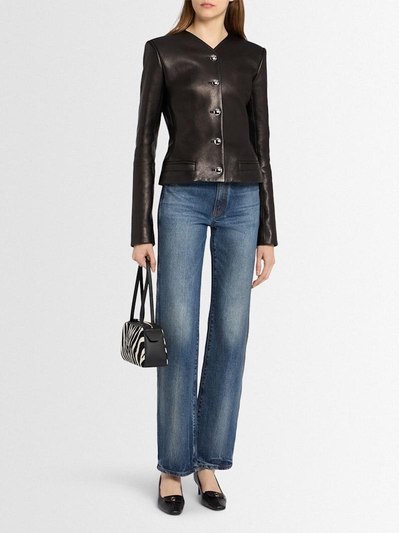 Nara皮革夹克 - 黑色 - 女士 - Khaite - 正面纽扣开合.