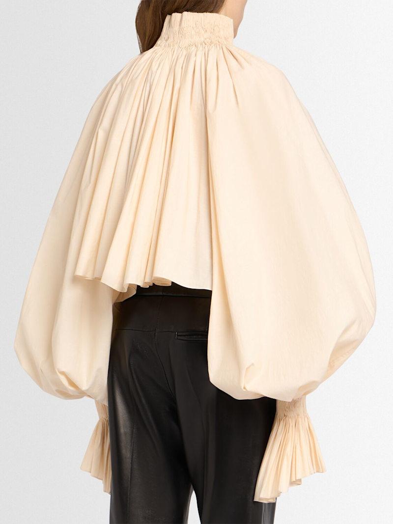 Durer褶饰混棉衬衫 - 米黄色 - 女士 - Khaite - 正面纽扣开合.