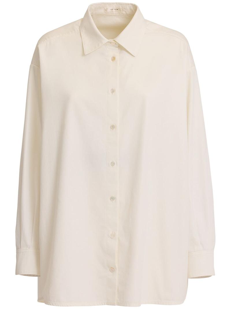 Luka棉质休闲衬衫 - 白色 - 女士 - The Row - 正面纽扣开合.