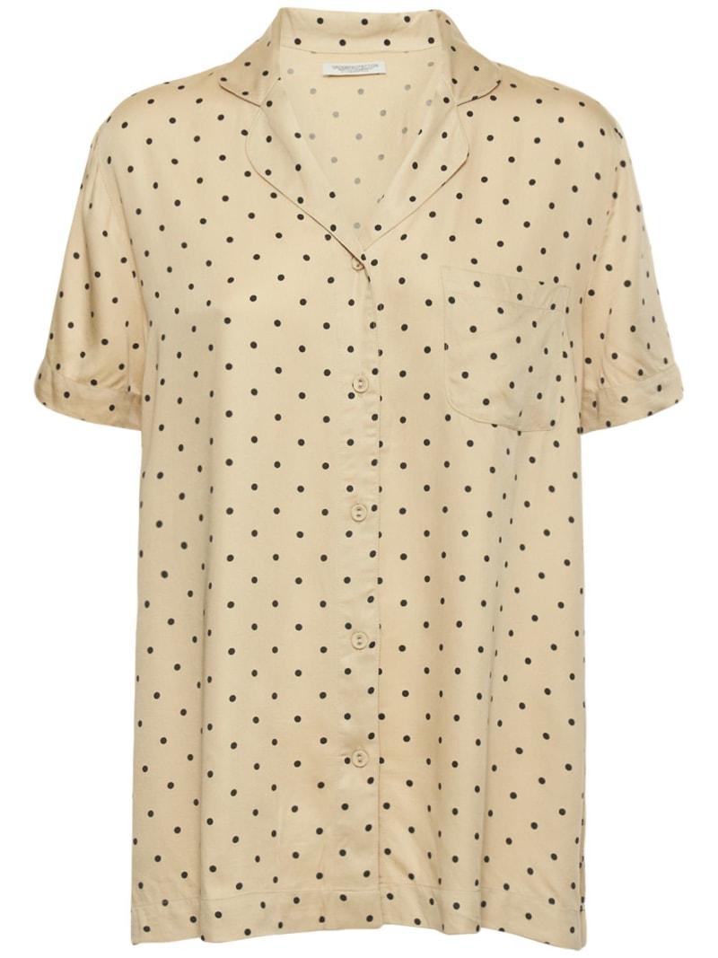 Fie Up绸缎睡衣衬衫 - 象牙色/多色 - 女士 - Underprotection - 正面纽扣开合.