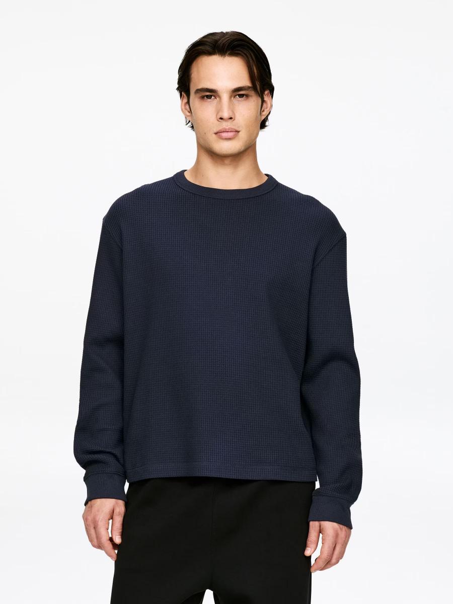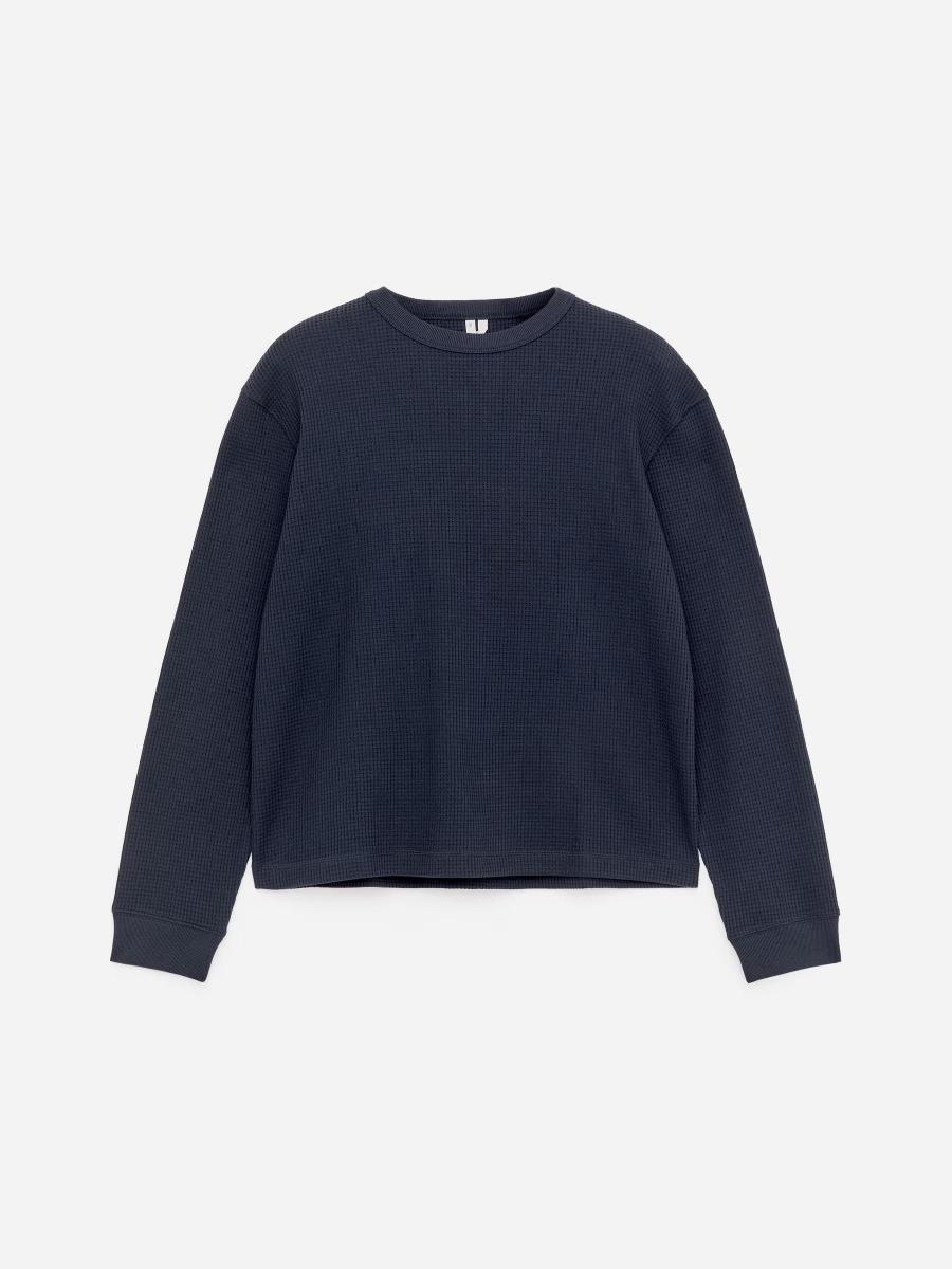 A long-sleeve T-shirt sewn from a cotton jersey cloth with a waffle texture. Cut for a regular fit, and detailed with ribbed trimmings at neckline and cuffs.ARKET/Men's clothes/Men's T-shirts/Men's long-sleeve T-shirts