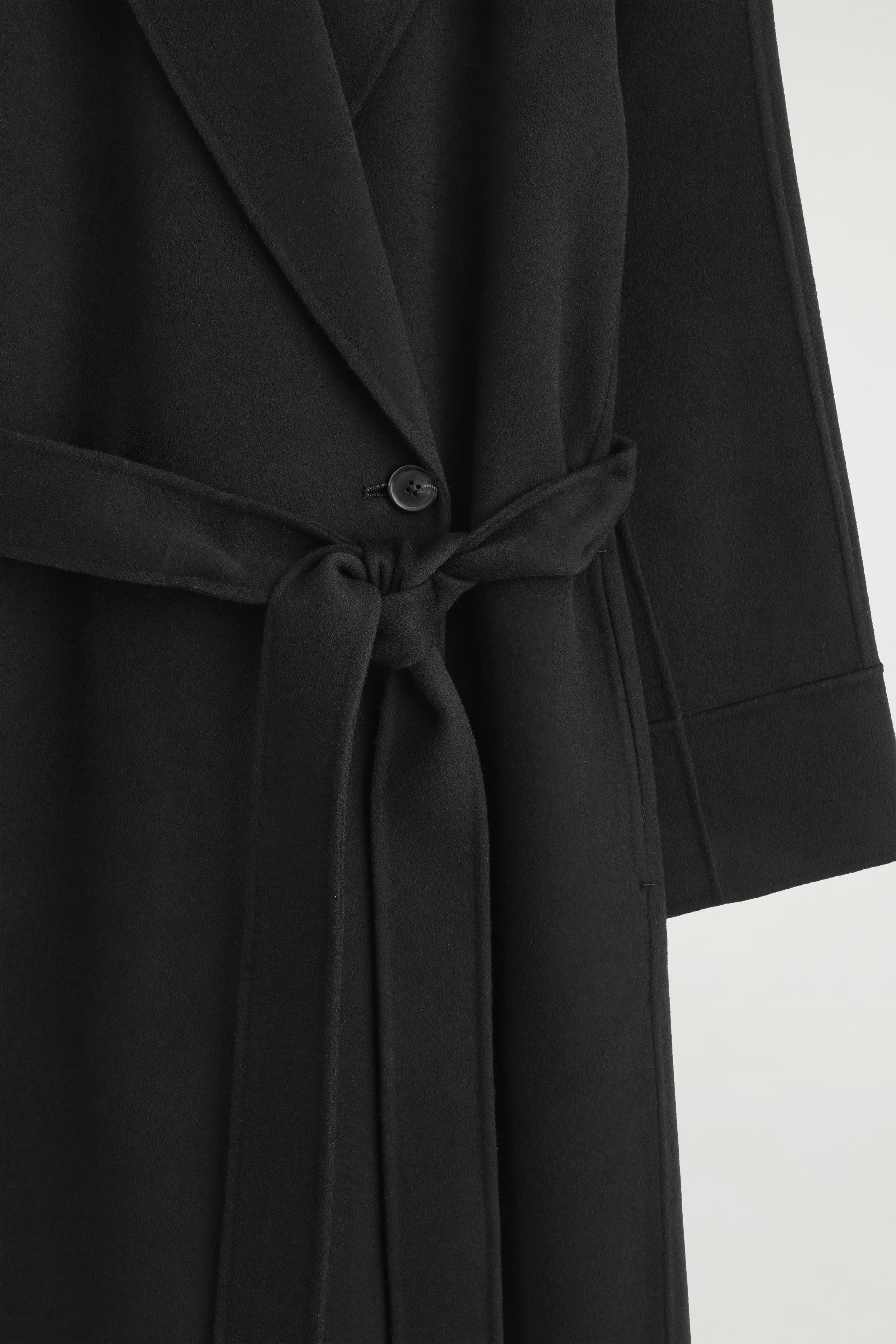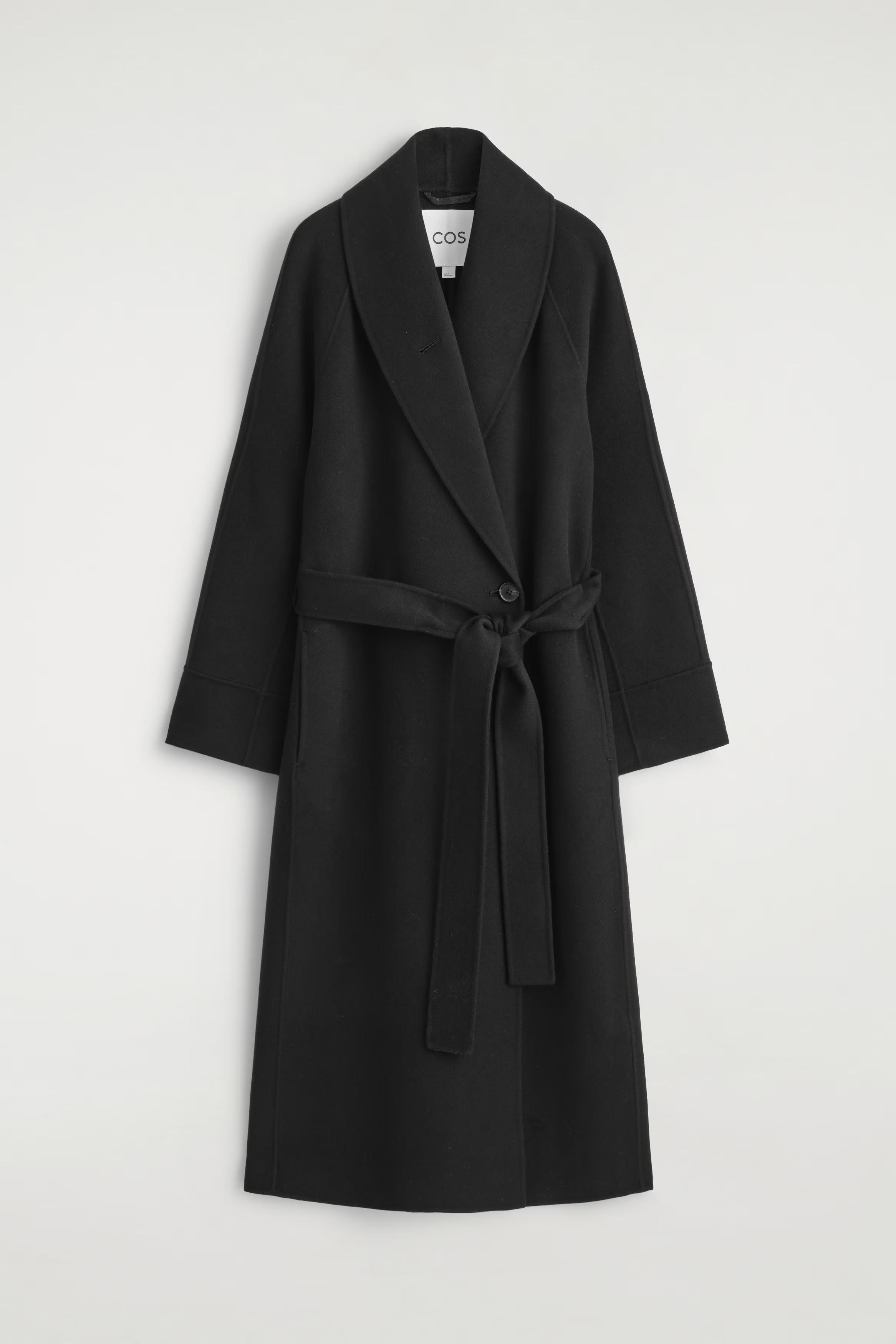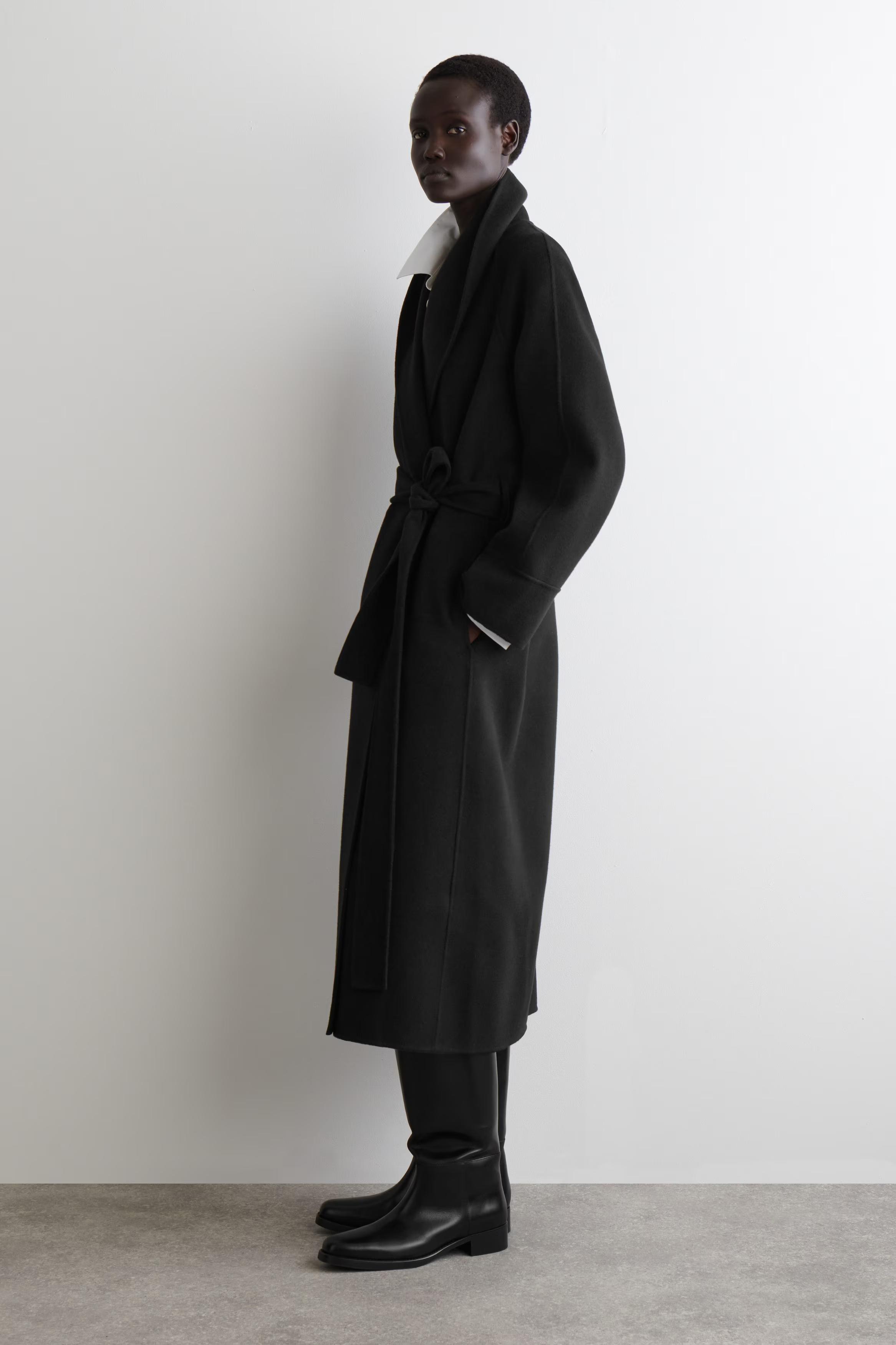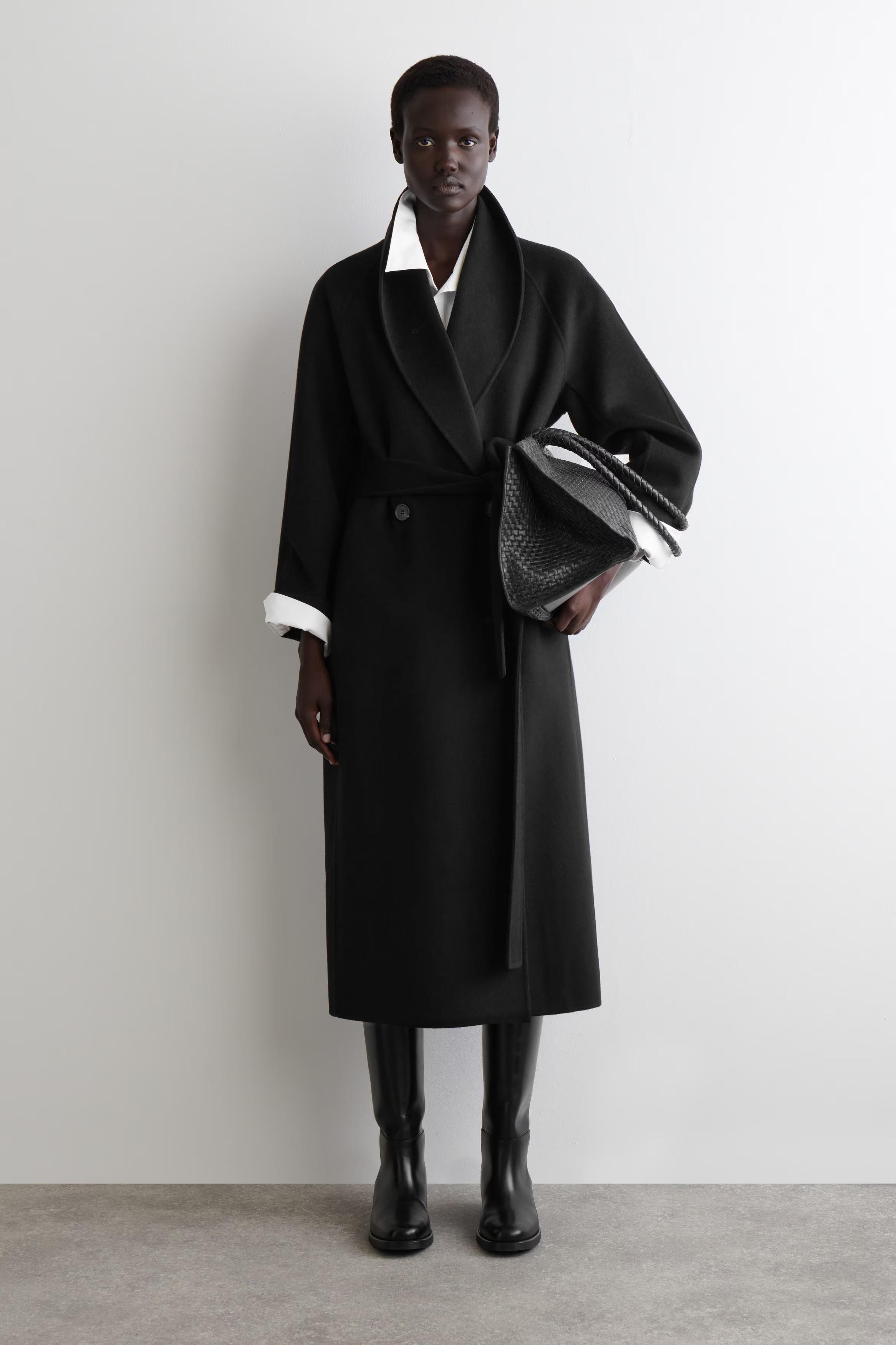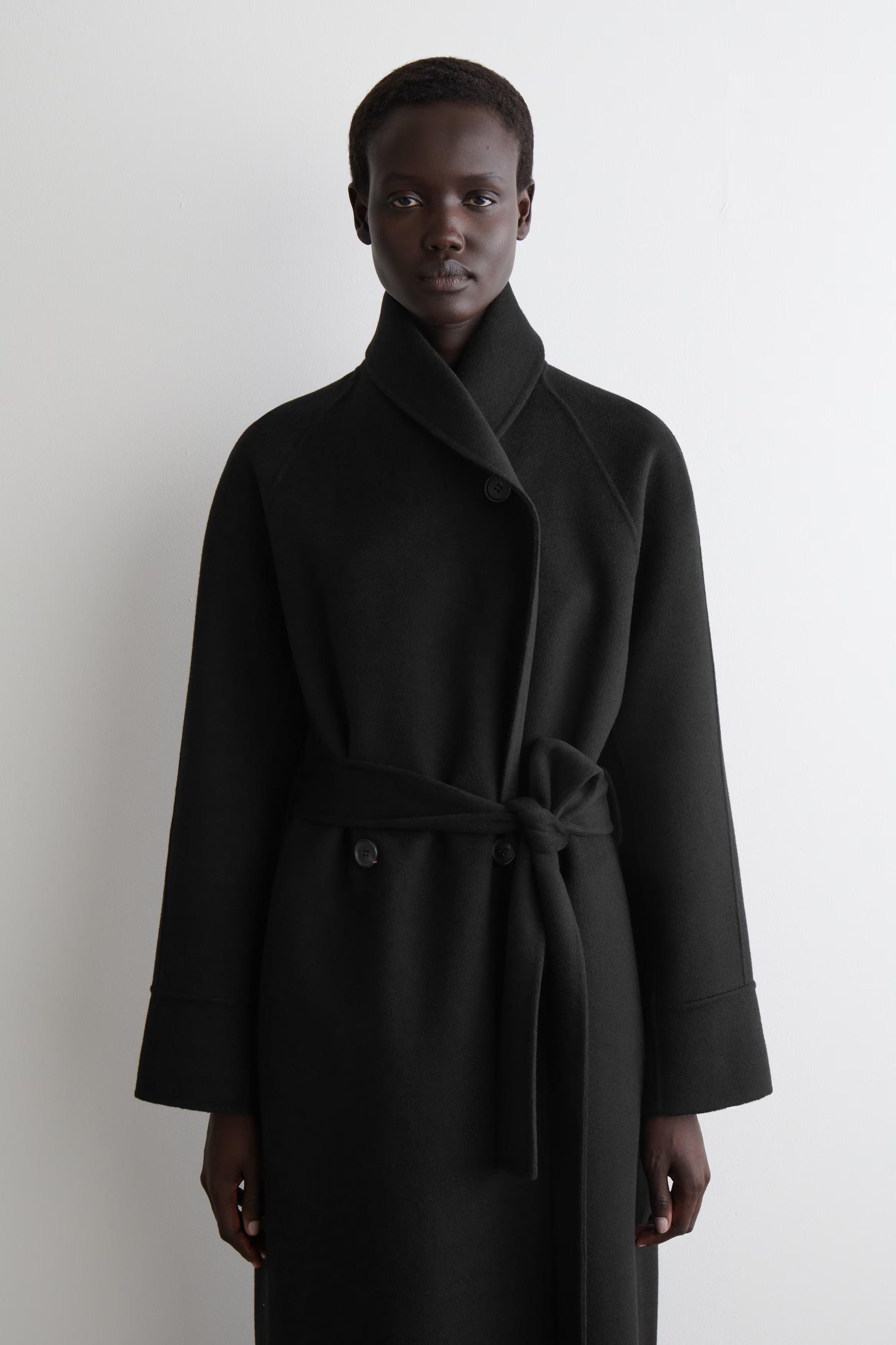 This refined coat channels the COS pillars of modern silhouettes and elevated design details. Crafted from double-faced wool, it's cut in a relaxed wrap silhouette and features shawl lapels, a double-breasted close and a tonal belt to define the waist.\u0026nbsp;Relaxed fitButton closureDry clean\u0026nbsp;Back length of size S is 123.8cm / Model wears a size S