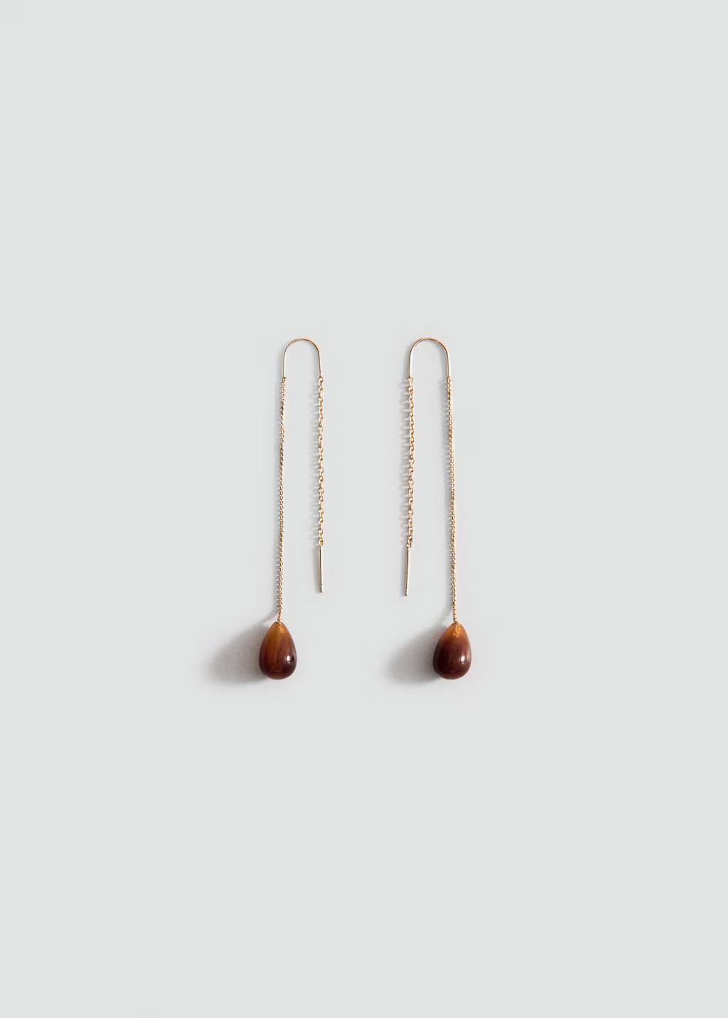 Diseño largo. Diseño de gota. Aplique de resina. Sin cierre