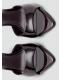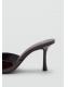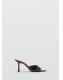 Efecto charol. Diseño destalonado. Diseño de tira. Puntera abierta. Tacón de aguja. Sin cierre. El tacón mide 8 cm