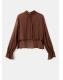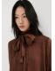Diseño recto. Detalle de volantes. Cuello alto. Manga larga. Cierre trasero