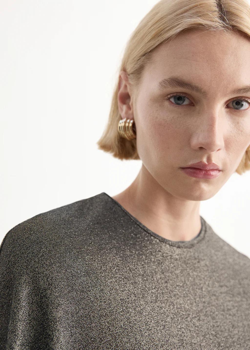 Tejido de lúrex. Diseño largo. Diseño asimétrico. Cuello redondo. Sin mangas. Cierre trasero. Esta prenda pertenece a nuestra colección de fiesta y evento, diseñada para elevar tus looks en ocasiones especiales