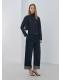 Tejido de algodón estilo tejano vaquero. Diseño recto. Cuello alto. Cierre de lazo en cuello y espalda. Costuras decorativas en contraste. Manga larga con puños abotonados. Disponible Plus