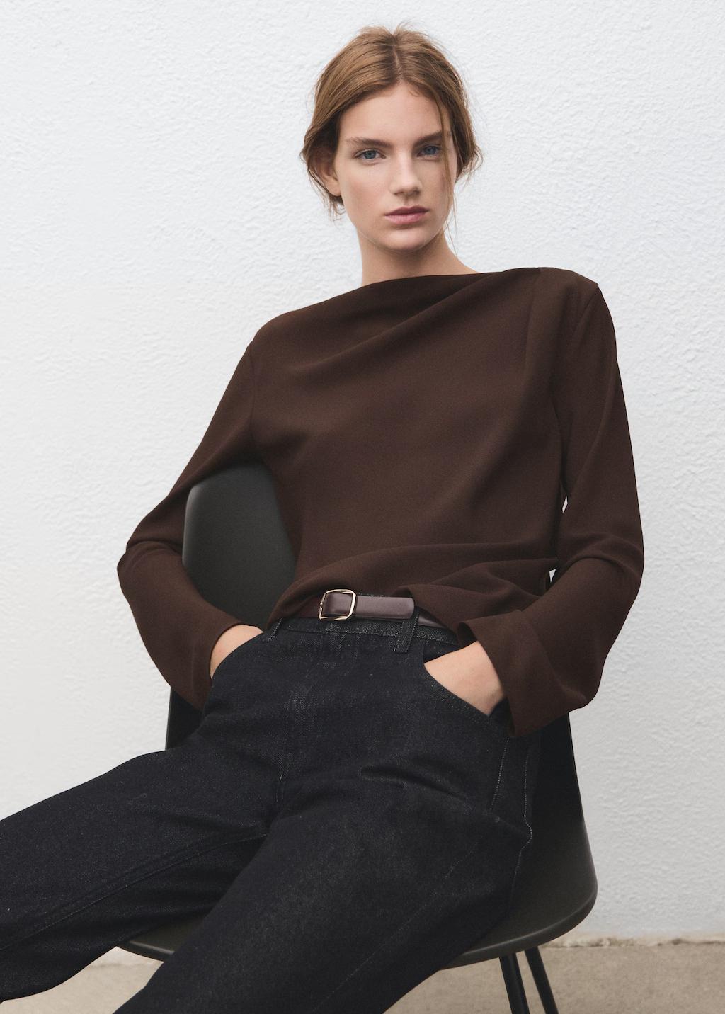 Blusa cuello barco drapeado