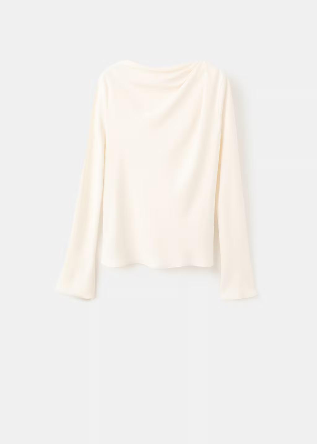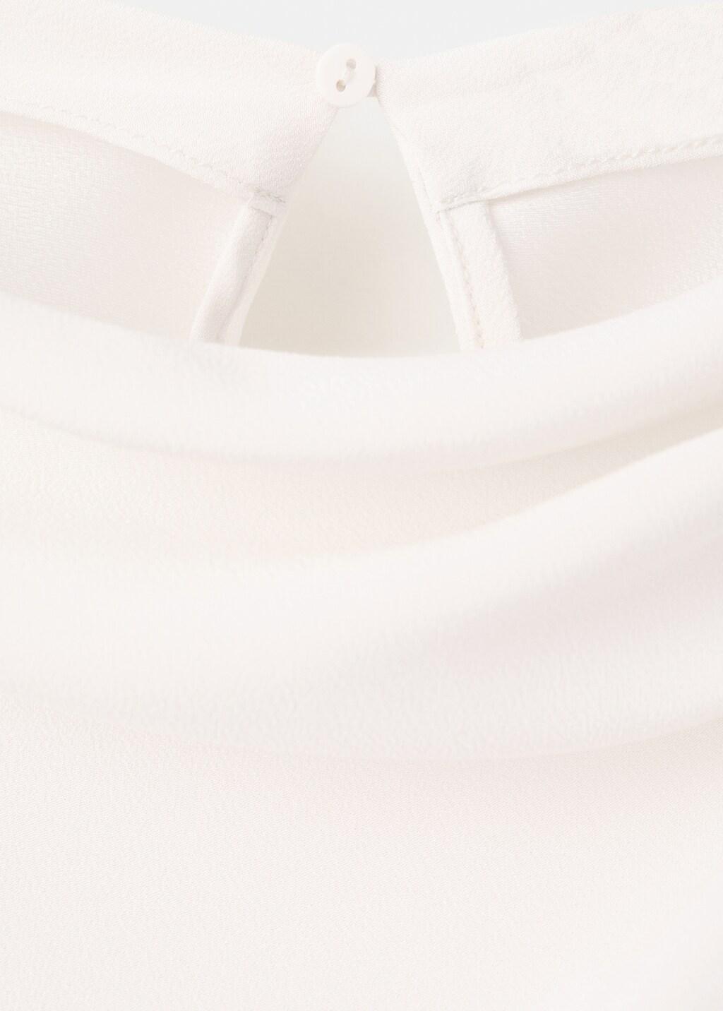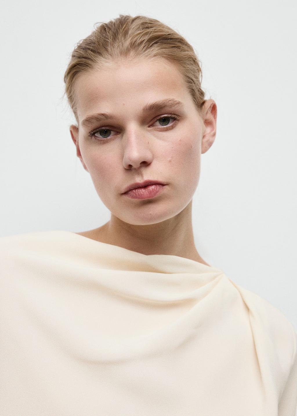 Diseño recto. Cuello barco. Diseño drapeado. Manga larga. Cierre de botón en la parte posterior