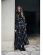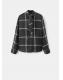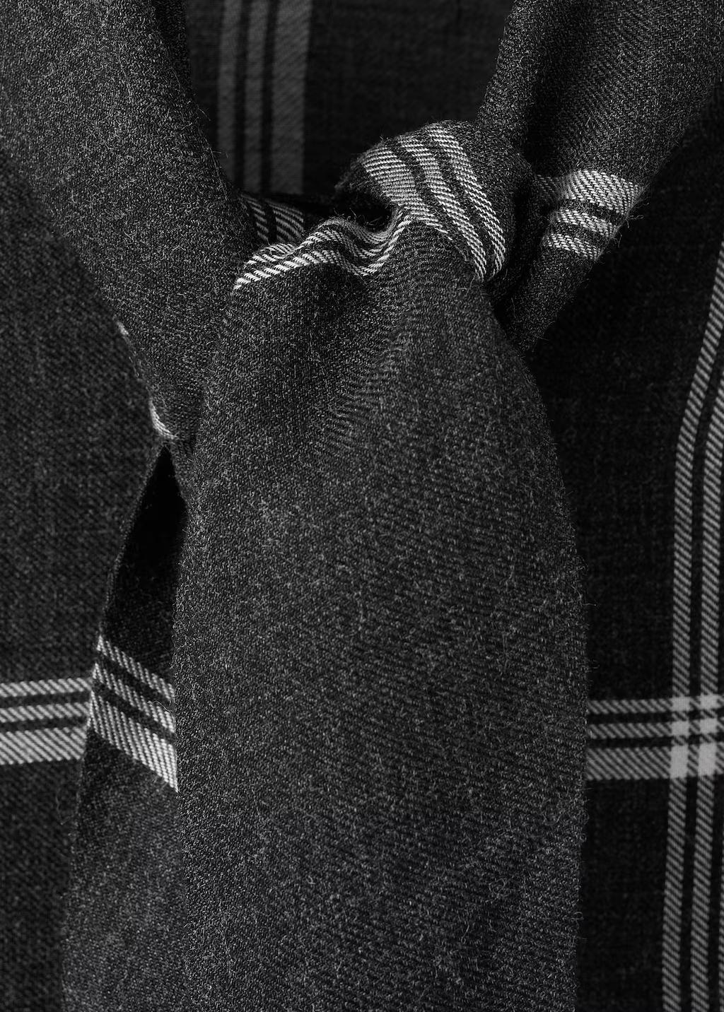 Diseño recto. Estampado de cuadros. Adorno de fular en el cuello. Manga larga. Cierre delantero con botones