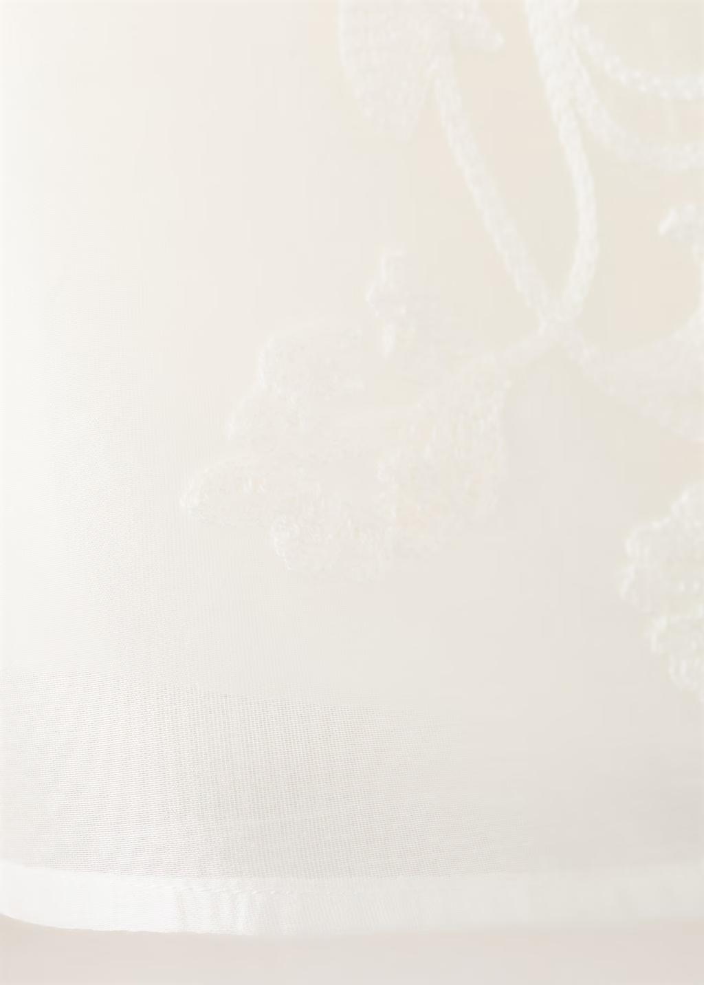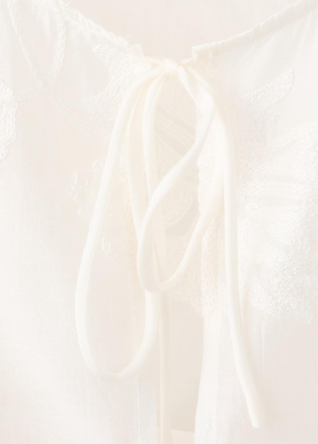 Diseño recto. Diseño crop. Bordado floral. Cuello redondo. Manga larga. Cierre de nudo. Exclusivo Online