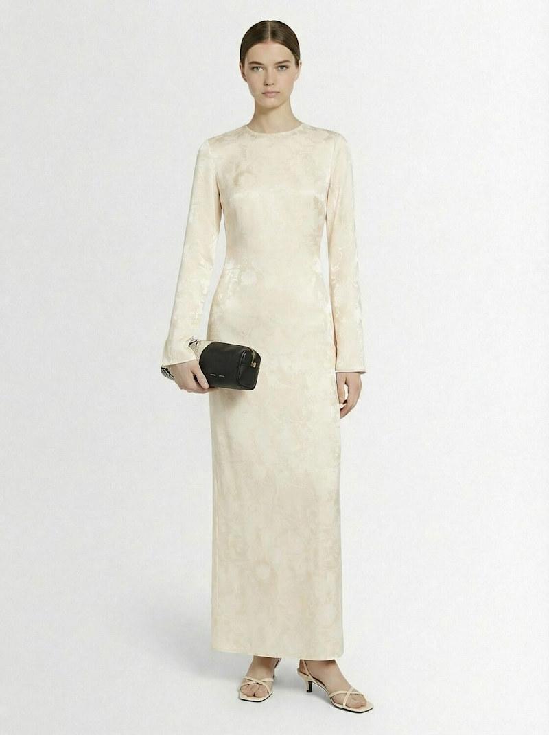 Viscose long dress - 奶油色 - 女士 - Back zip closure